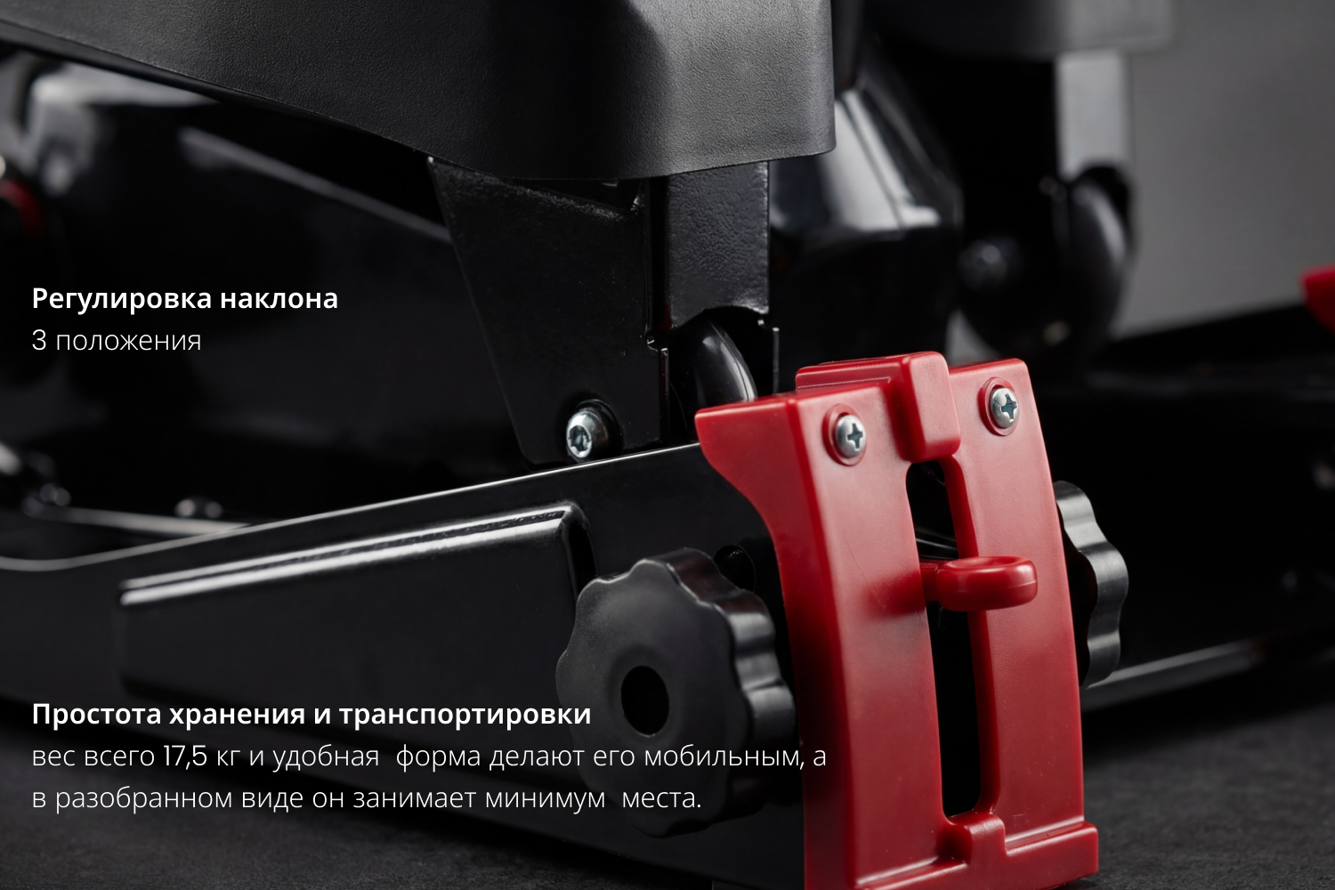 Простота хранения и транспортировки – вес всего 17,5 кг и удобная форма делают его мобильным, а в разобранном виде он занимает минимум места.