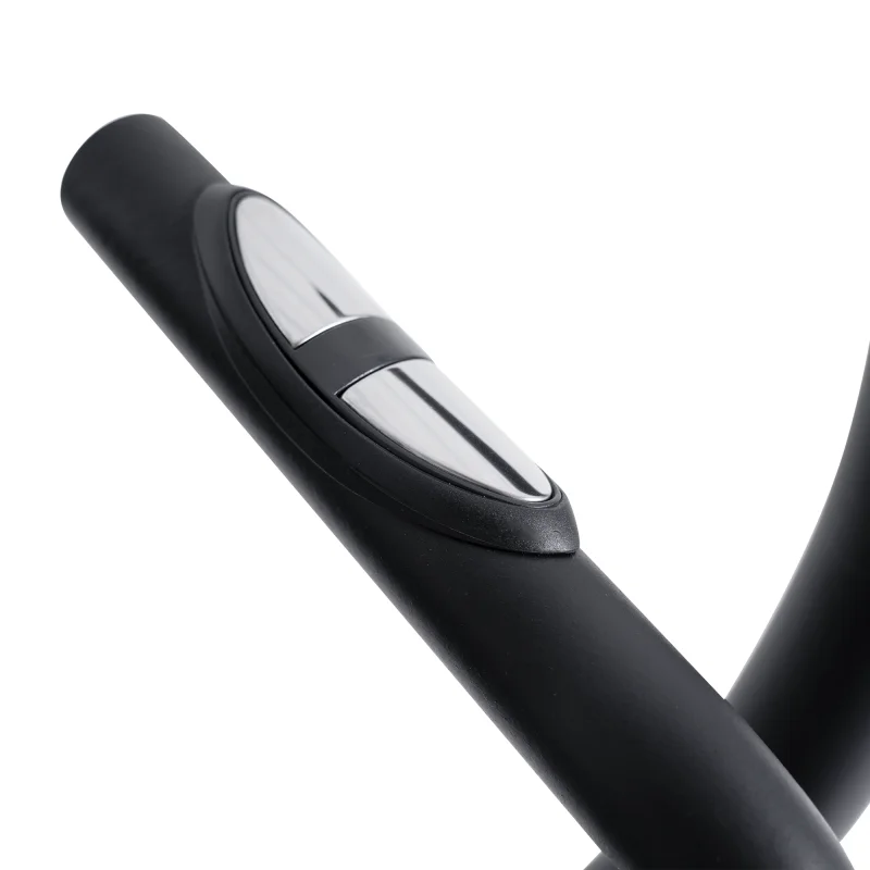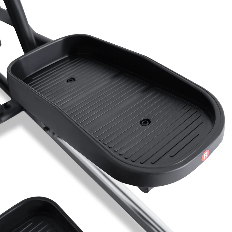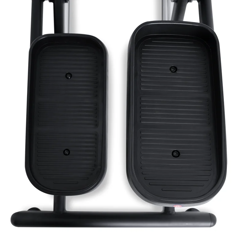 Тренажер предлагает инерционный вес маховика в 24 кг, что обеспечивает плавный и комфортный ход. Расстояние между педалями составляет всего 30 мм, что способствует естественному движению во время тренировки. Длина шага в 500 мм и антискользящие педали увеличенного размера гарантируют безопасные и эффективные занятия. Двухпозиционные нескользящие рукоятки с сенсорными датчиками пульса позволяют контролировать сердечный ритм во время тренировки.