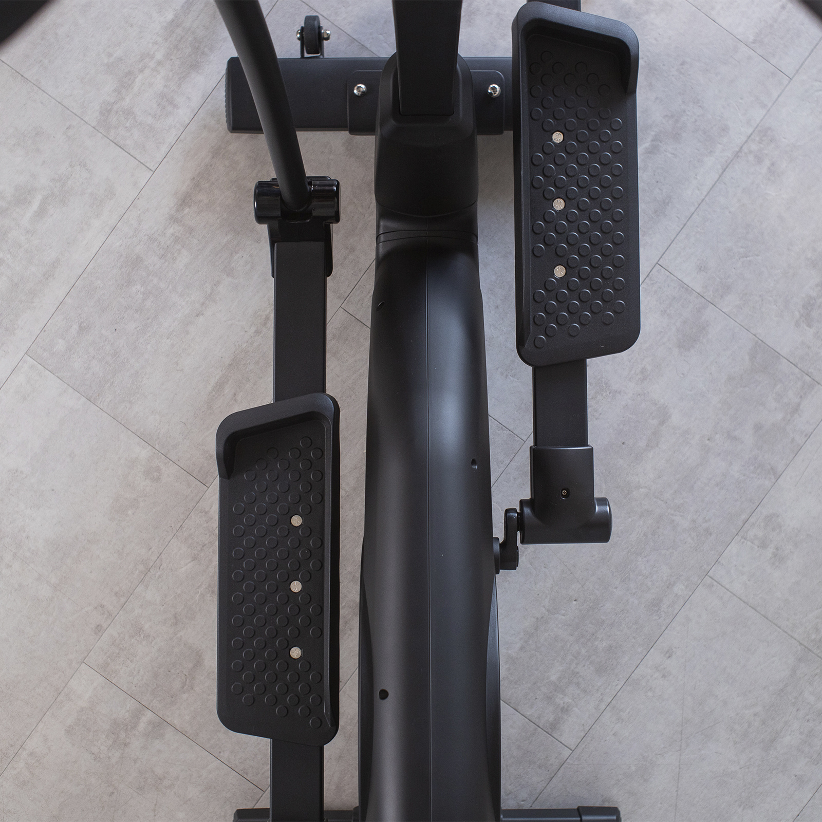 Длина шага тренажера — 45 см. Это хороший показатель для комфортных движений пользователей практически любого роста. Расстояние между педалями — 20 см, стандартное для заднеприводных моделей.