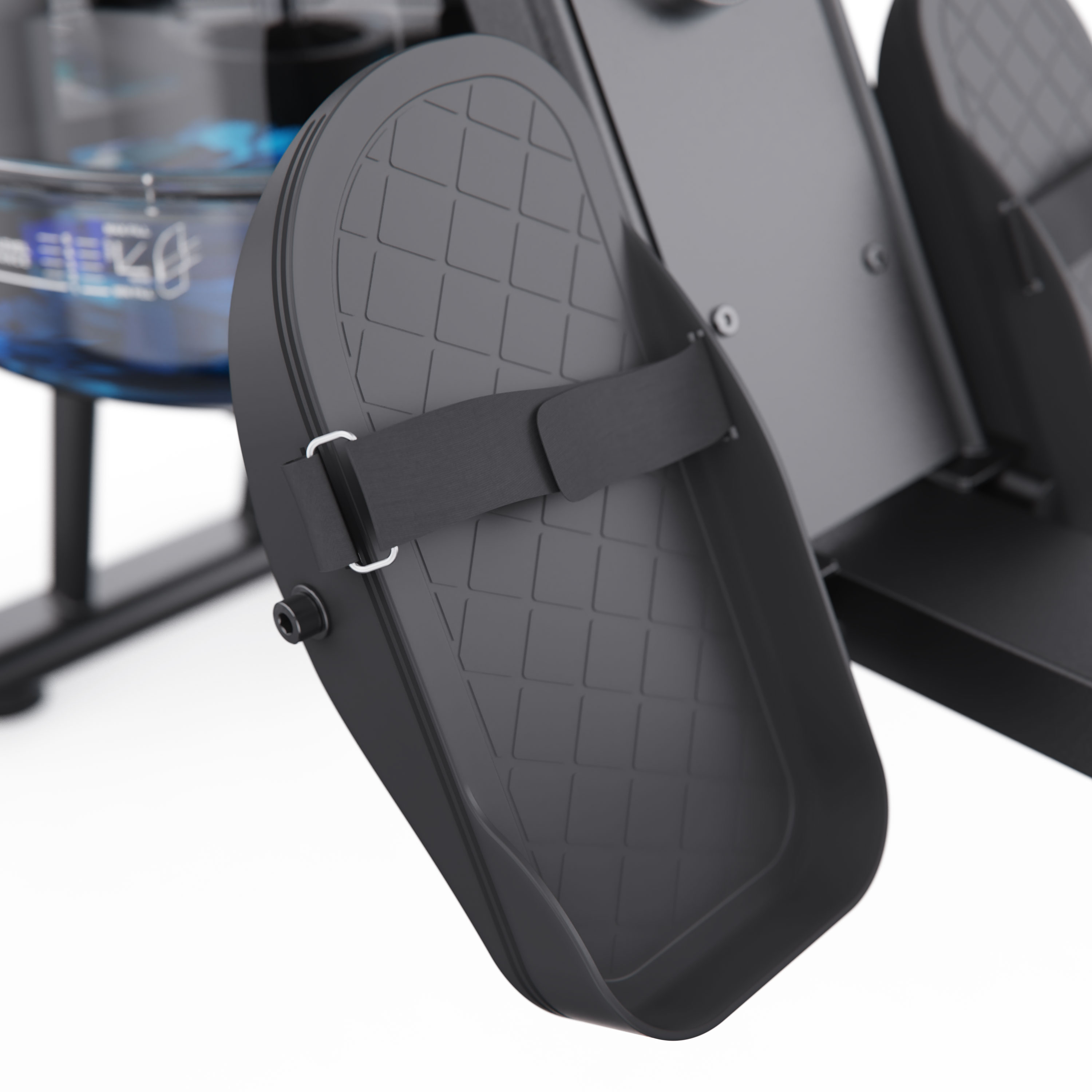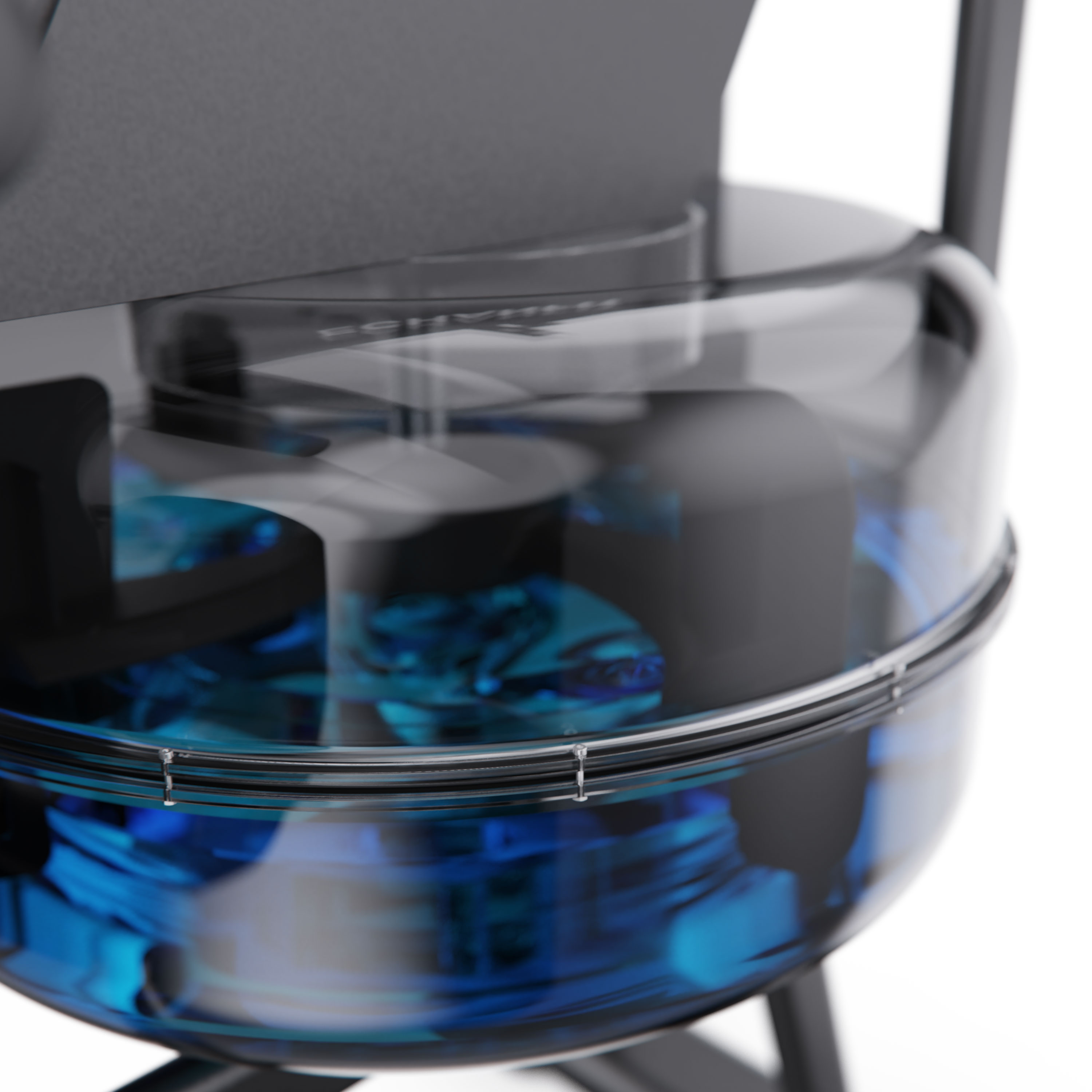 Гребной тренажер сочетает водное и магнитное сопротивление, предлагая 6 уровней водного и 32 уровня магнитного сопротивления. Такая система позволяет создавать неограниченное количество комбинаций для индивидуальной настройки интенсивности тренировок в зависимости от уровня подготовки и целей пользователя. Смещенные лопасти гидровентилятора имитируют реальную греблю на воде, обеспечивая плавное и естественное сопротивление.