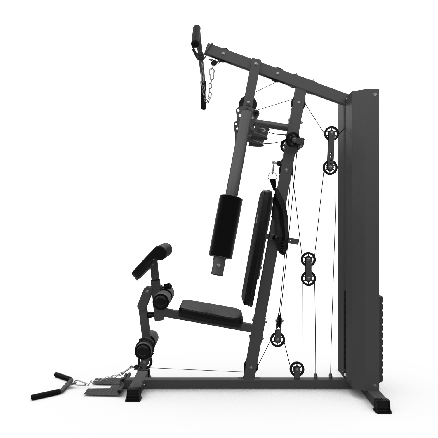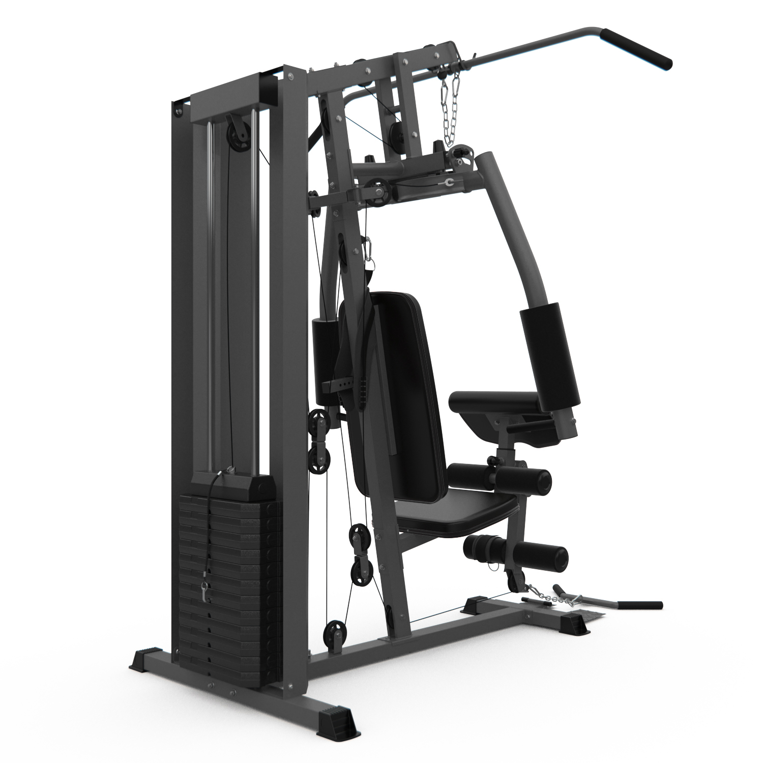Силовая станция оснащена верхним и нижним тяговыми блоками, тренажёром «баттерфляй», партой для бицепса, мягкими валиками с анкерной фиксацией для ног, что делает её универсальной для комплексной проработки всего тела дома. Этот тренажёр силовой комплекс идеально подходит как для домашнего использования, так и для полноценной силовой тренировки всего тела.
