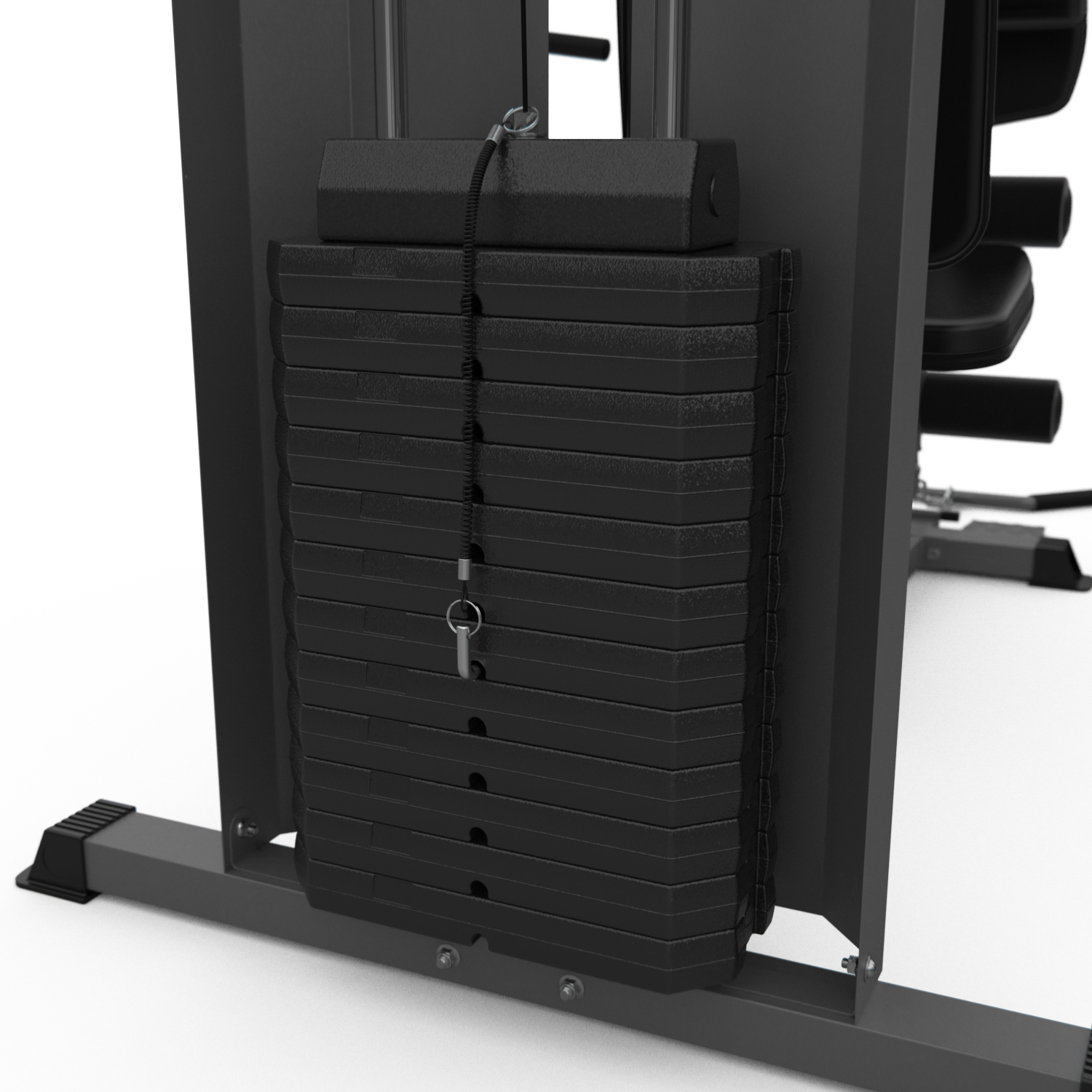 В конструкции предусмотрено 11 свободных блоков и один встроенный весовой блок весом 72 кг. Такая система позволяет гибко настраивать нагрузку под уровень подготовки пользователя — от начинающего до уверенного спортсмена. Тренажер силовой комплекс удобно использовать как для набора мышечной массы, так и для поддержания формы.