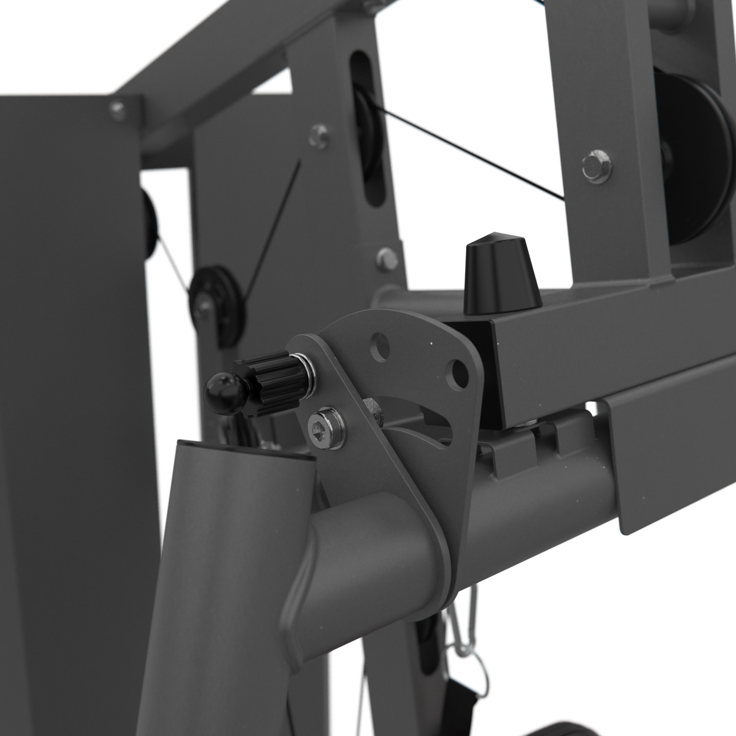 Спинка регулируется по горизонтали в трёх положениях, что позволяет адаптировать тренажёр под рост пользователя и особенности выполнения упражнений, повышая комфорт и эффективность занятий.