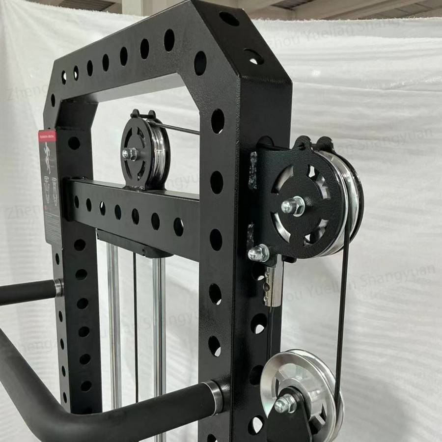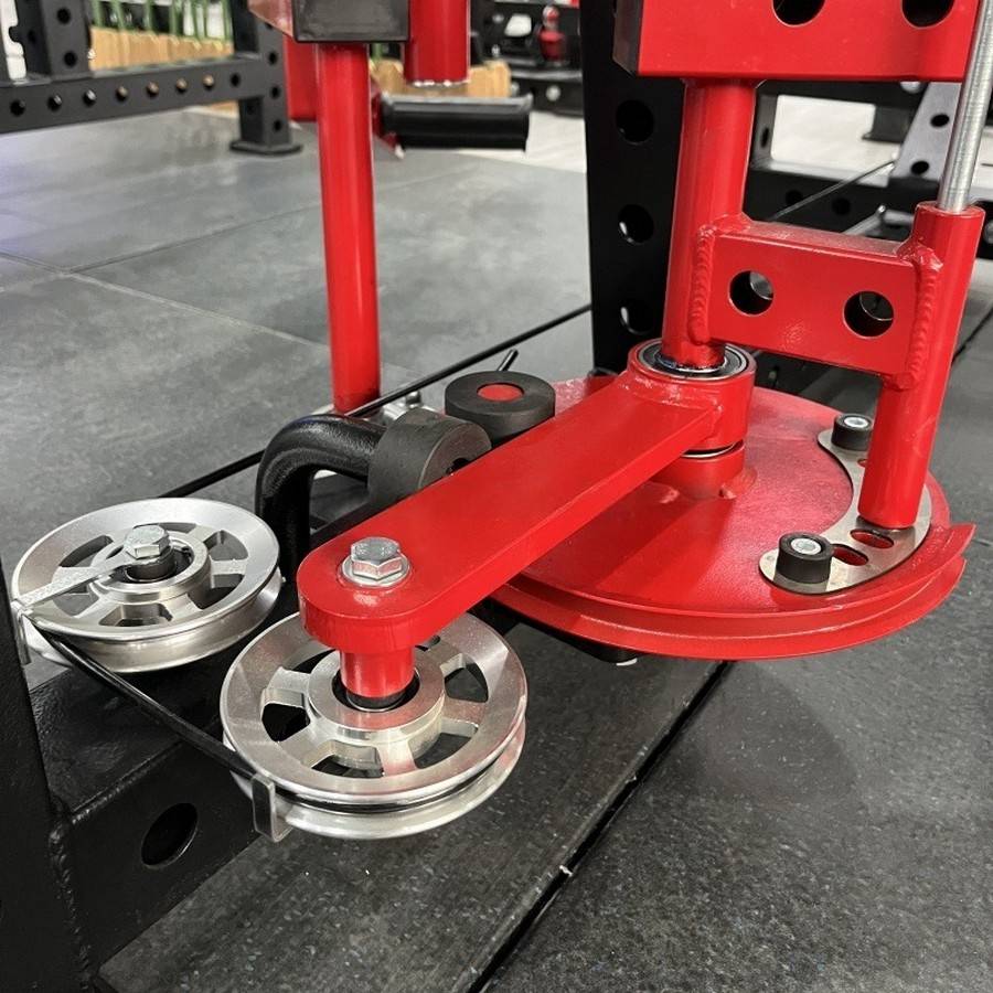Тросовый блок тренажера снабжен долговечными алюминиевыми шкивами с впресованными малошумными подшипниками, стальным 5 мм тросом с ПУ покрытием, идеально ровными стальным направляющим стеков с зеркальной полировкой и втулкам грузов стека с низким коэффициентом трения.