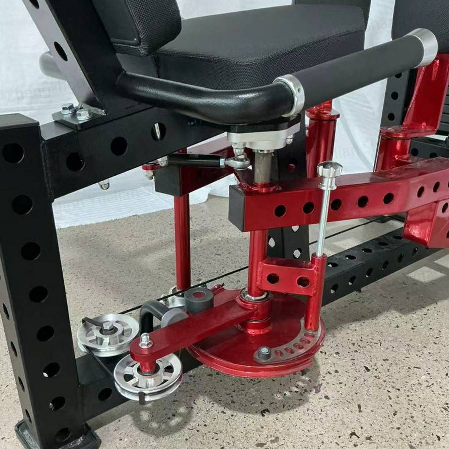 Амплитуда движения регулируется в 6 положениях с помощью пружинного фиксатора, быстро адаптируя тренажер под рост пользователя и под тип упражнения. Большая рукоять для смены положения удобно расположена под под правой рукой атлета. Биомеханически правильный наклон спинки и боковые ручки для фиксации тела, покрытые нескользящим резиновым покрытием, способствуют правильной изоляции целевых мышечных групп бедра. Большие обрезиненные подножки подходят для пользователей с разным размером стопы.