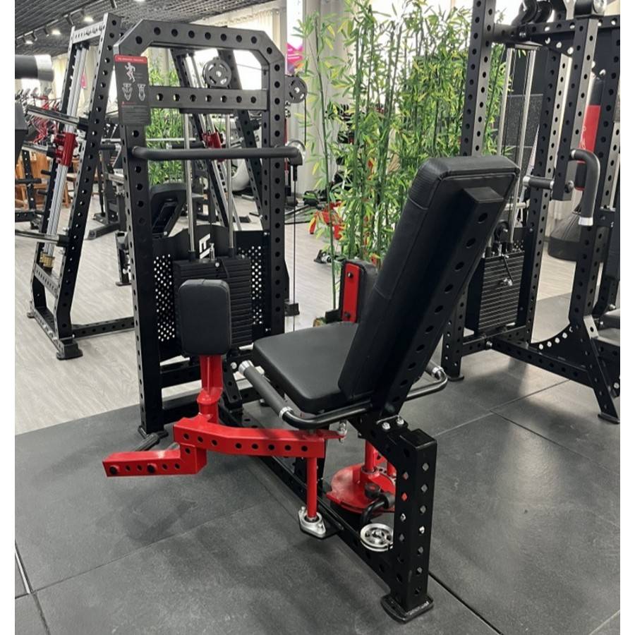 Конструкция тренажера имеет большой запас прочности и выдерживает максимальный вес пользователя 150 кг, благодаря профилю рамы и стека из стальной трубы 75х75 мм и 50х80 мм с толщиной стенки 2,5 мм. Тренажер выполнен в компактном дизайне при котором спорстмен расположен напротив рамы стека. Это позволяет менять нагрузку и настроить диапазон движения, не вставая с тренажера.