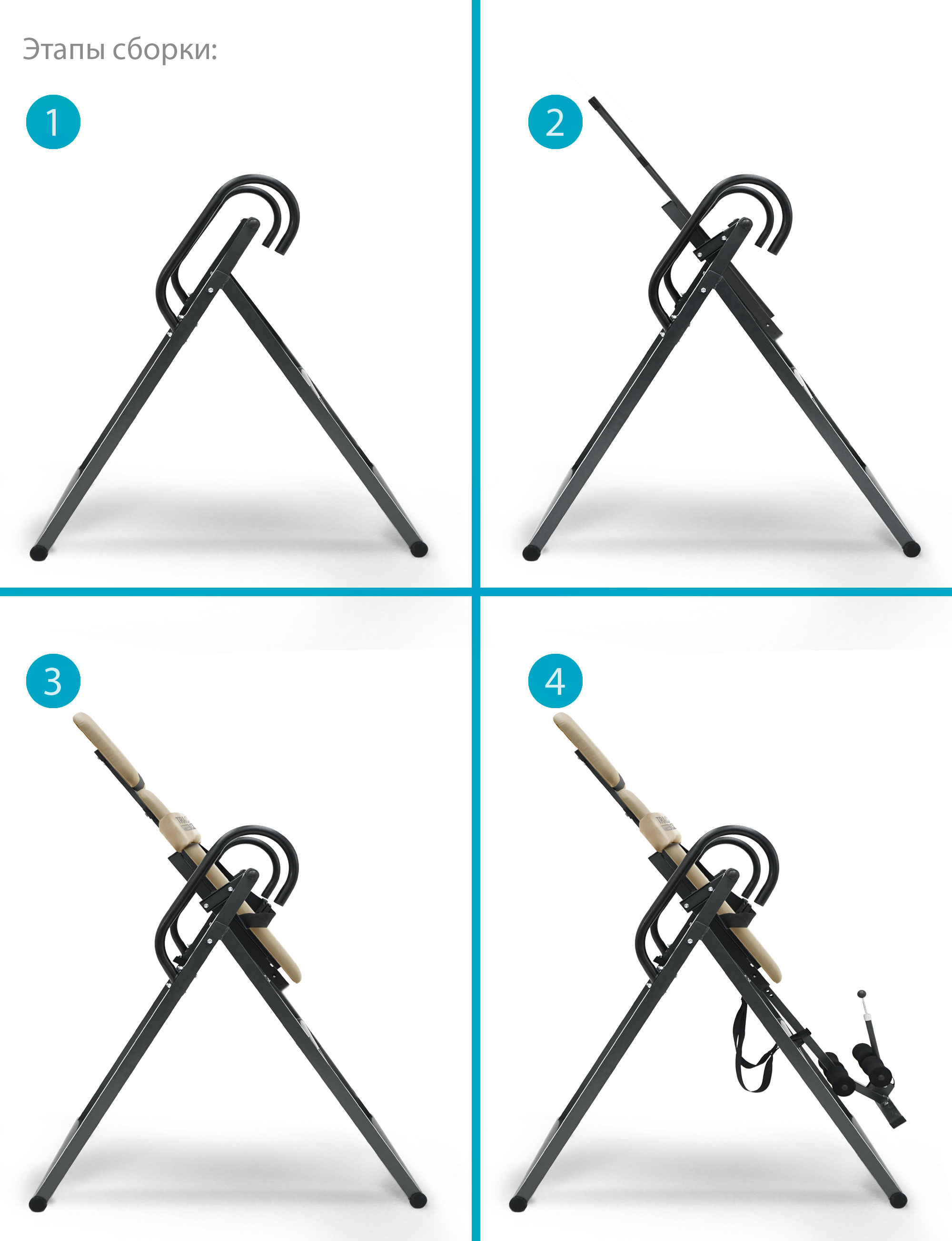 Стол максимально прост и удобен в сборке, так как рама инверсионного стола поставляется в сборе.