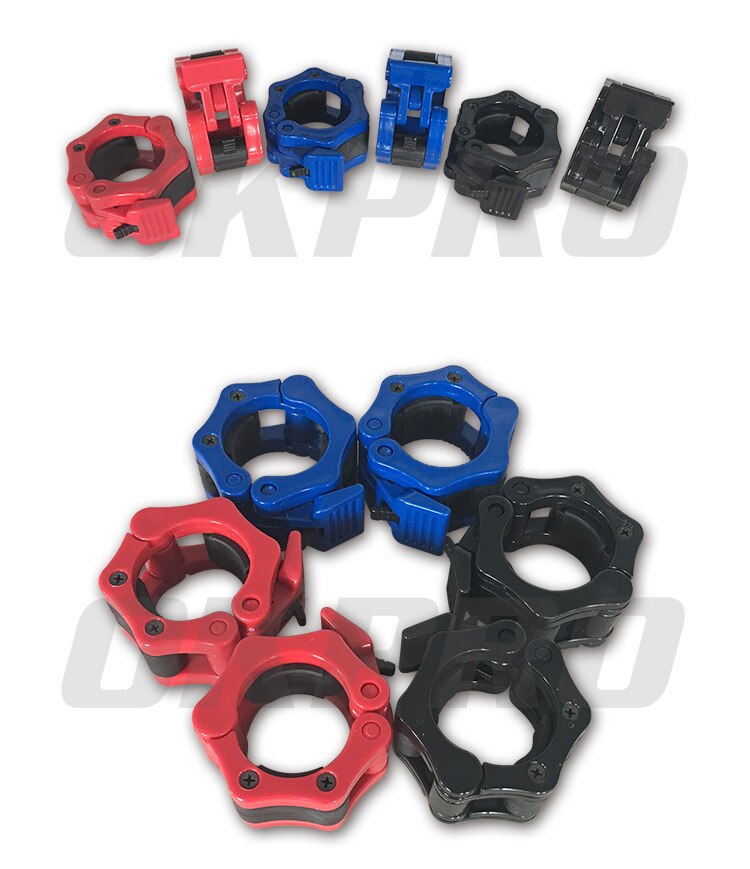Замок для олимпийского грифа OKPRO OK5041 - пластиковый зажим-замок с механизмом быстрого снятия Quick Release. Изготовлен из прочного ABS-пластика, запатентованного в США. Благодаря простому и надежному механизму, замок легко и безопасно снимается с грифа.