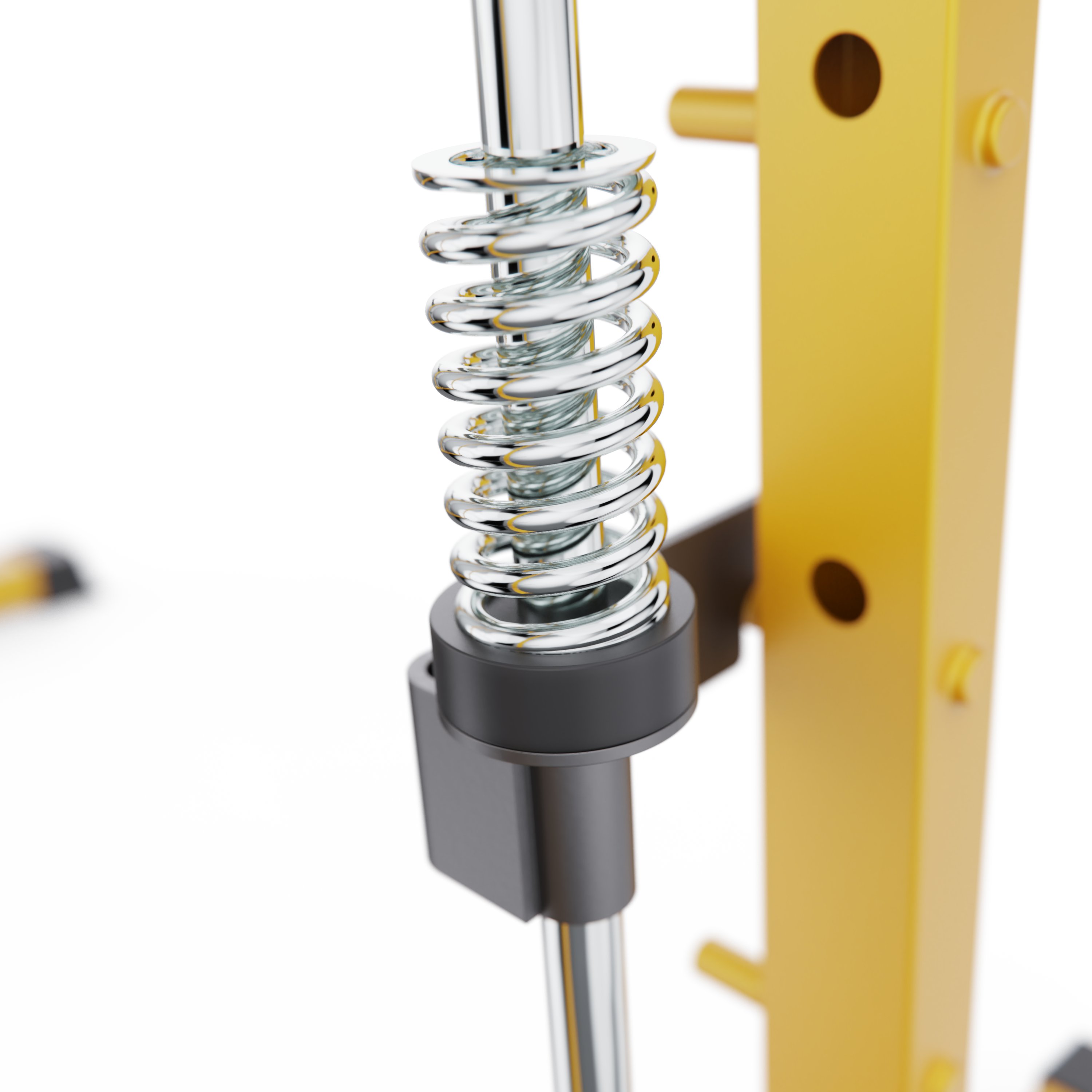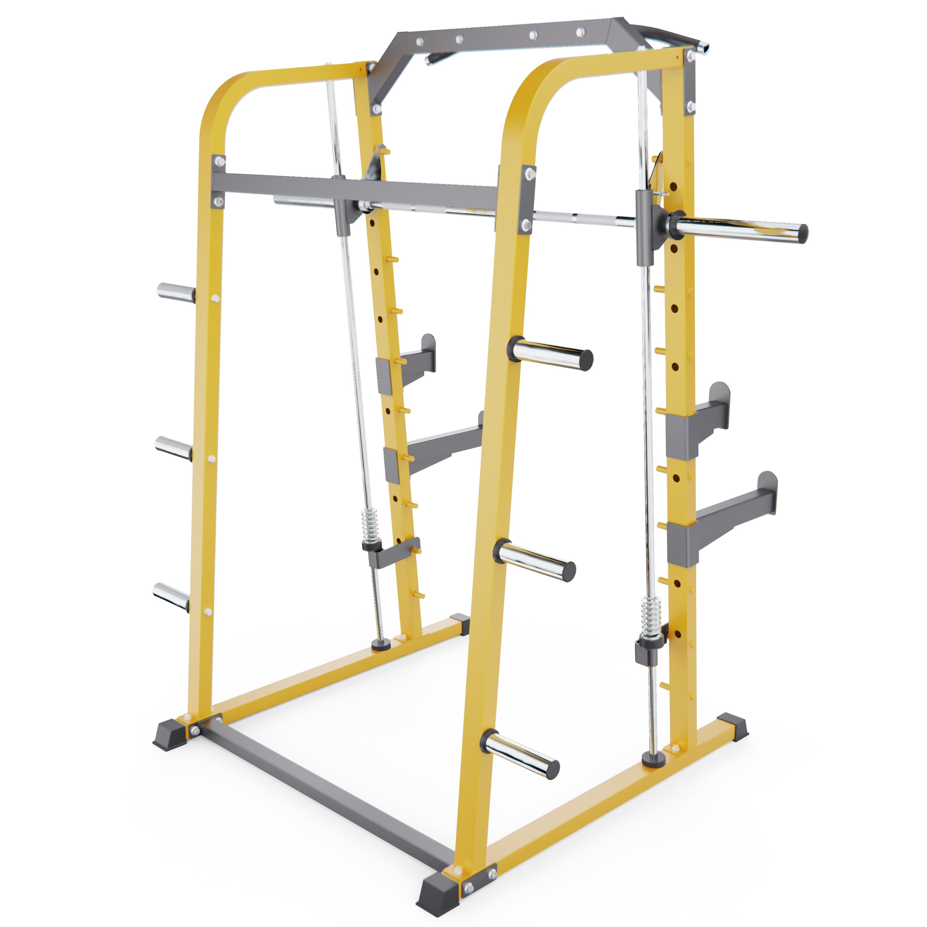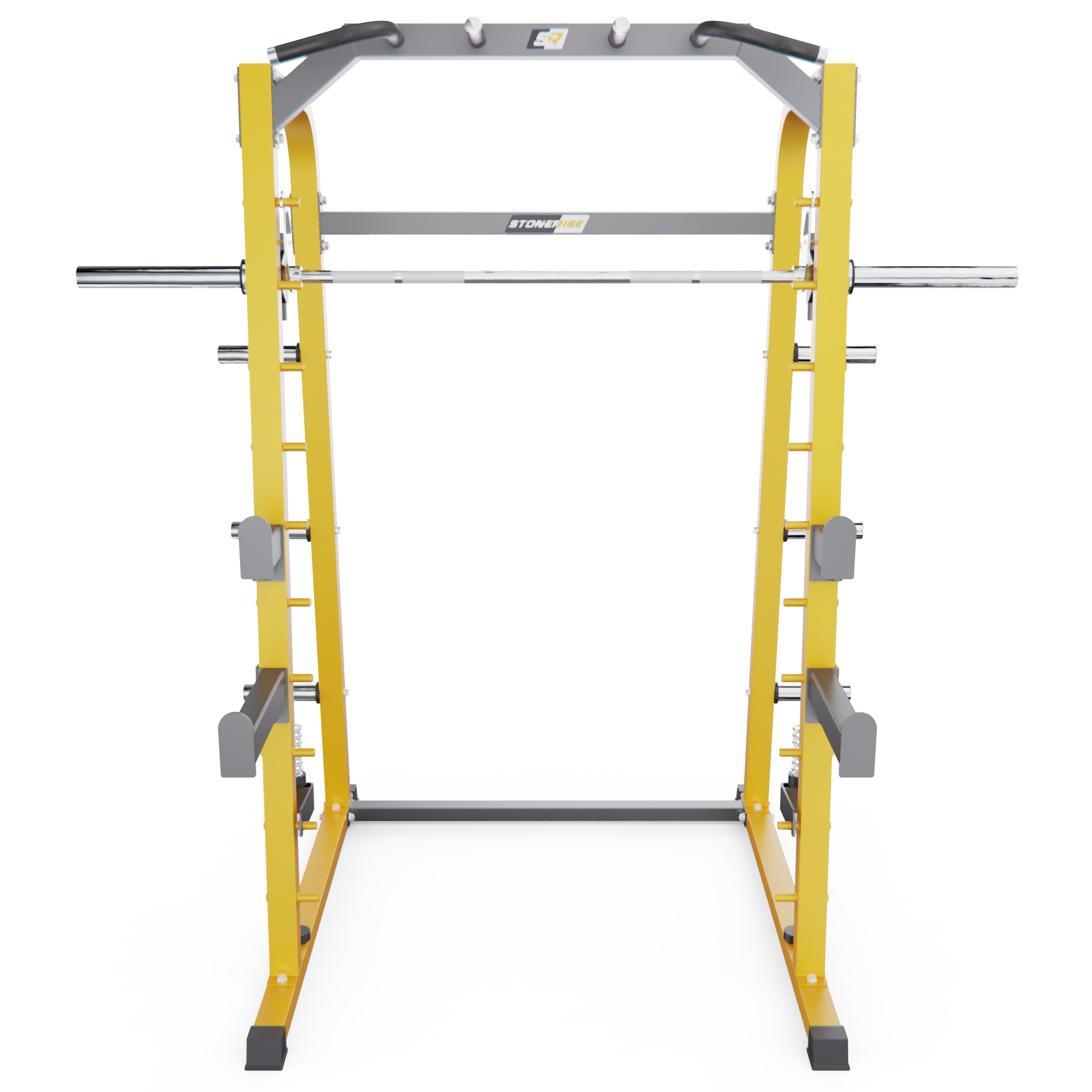 Дополнительные J-образные крюки помогут удобно разместить штангу на нужной высоте, позволяя атлетам безопасно выполнять жимы, приседания и тяги без страховщика.