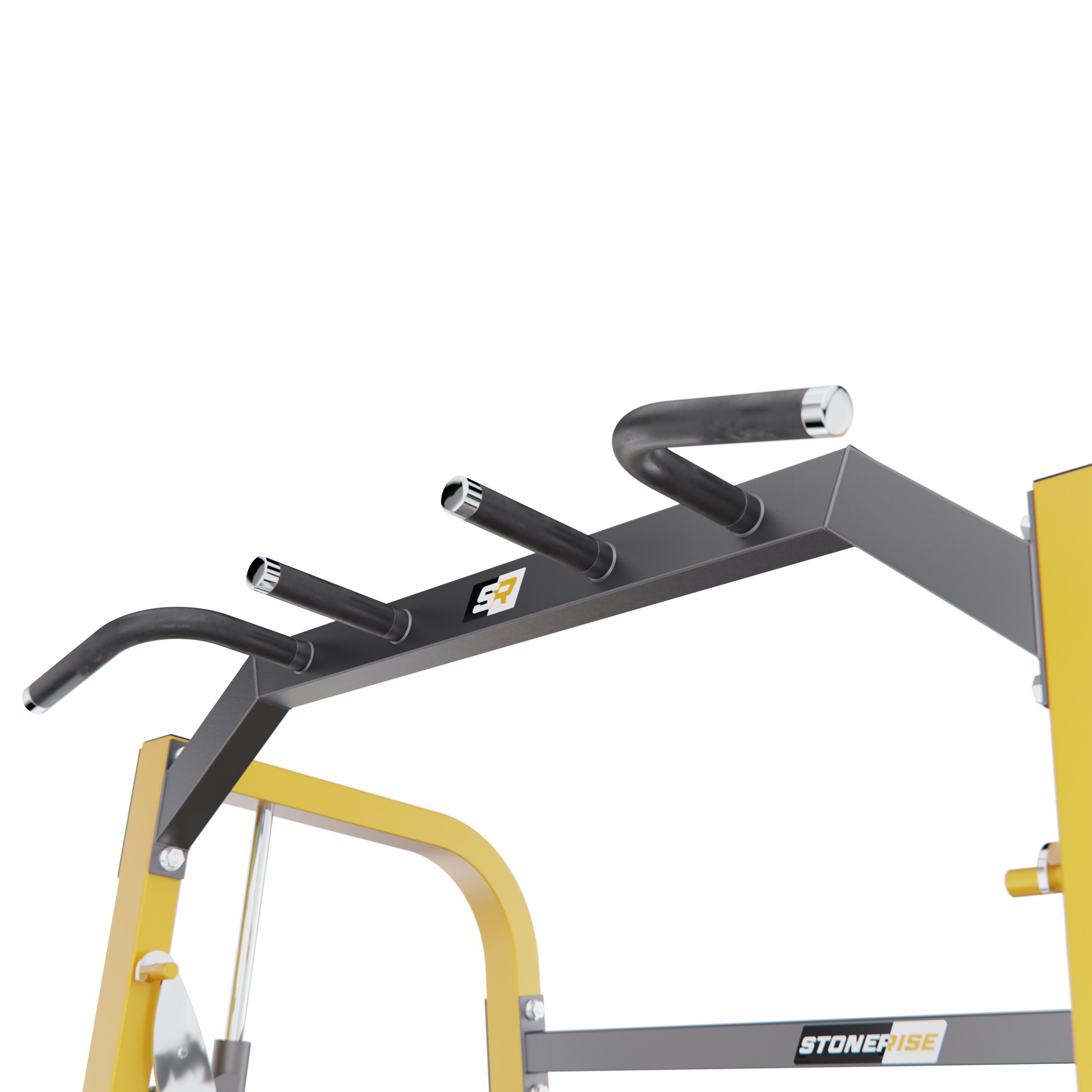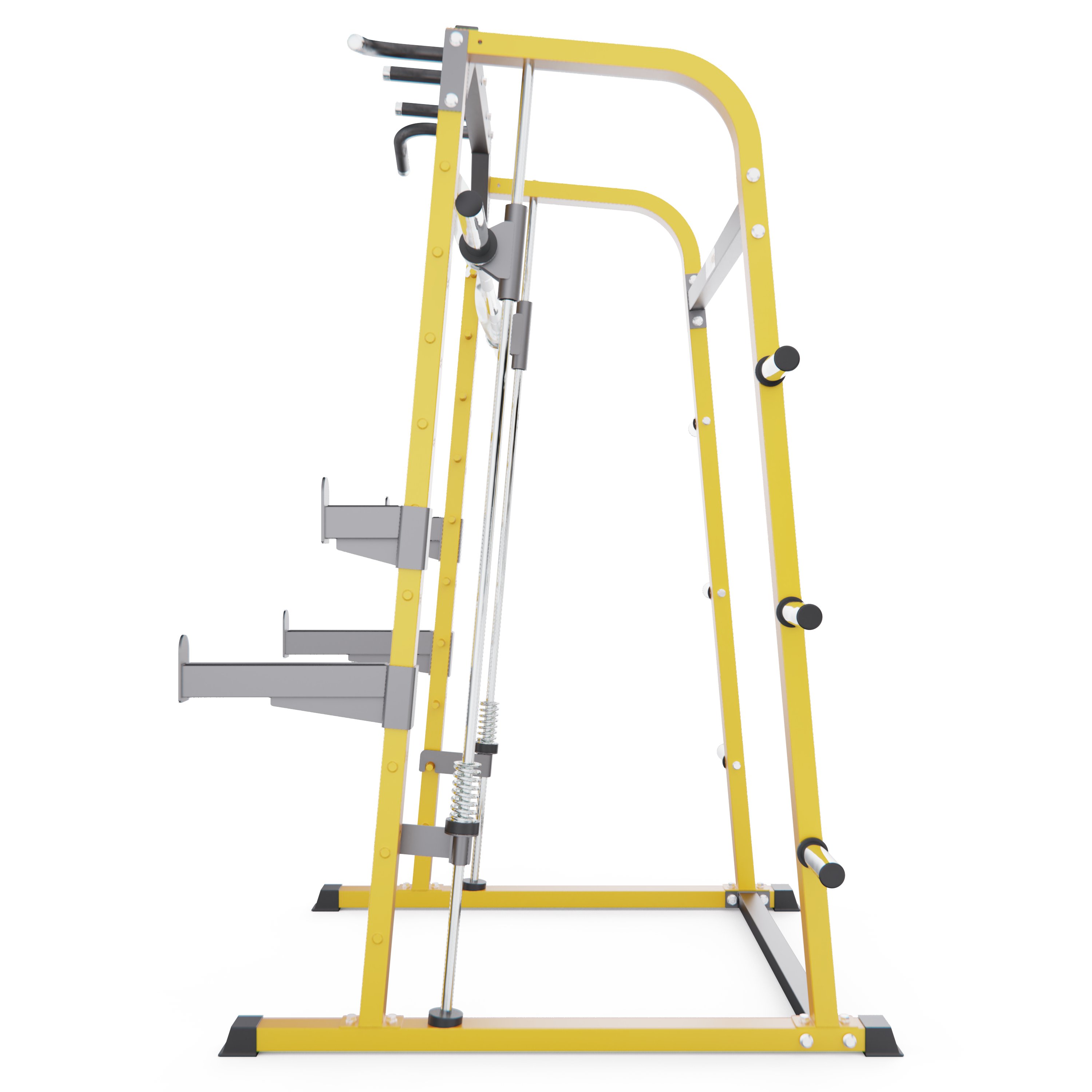 Максимальная нагрузка на верхний турник до 150 кг, на гриф — до 200 кг, на ограничители амплитуды движения — до 250 кг.