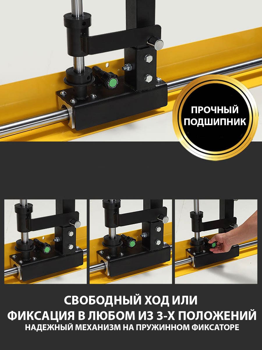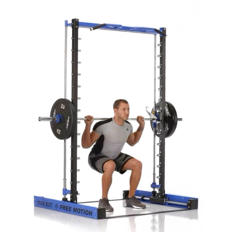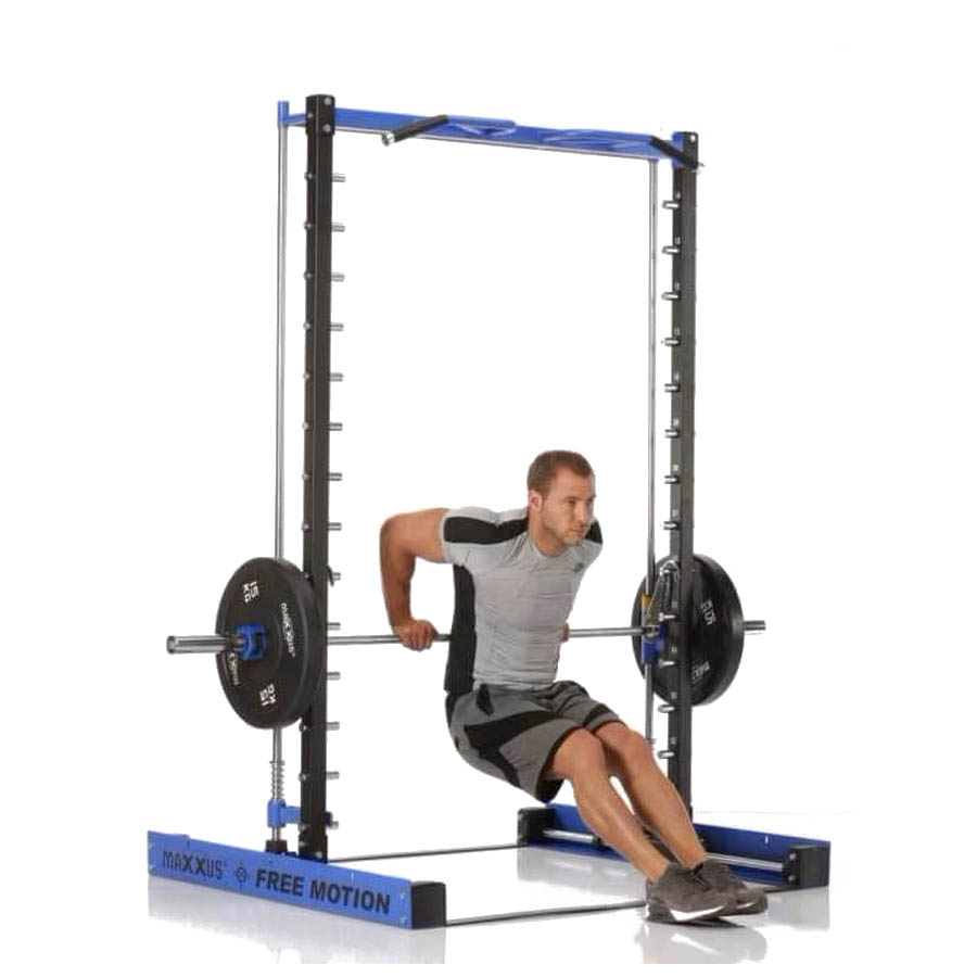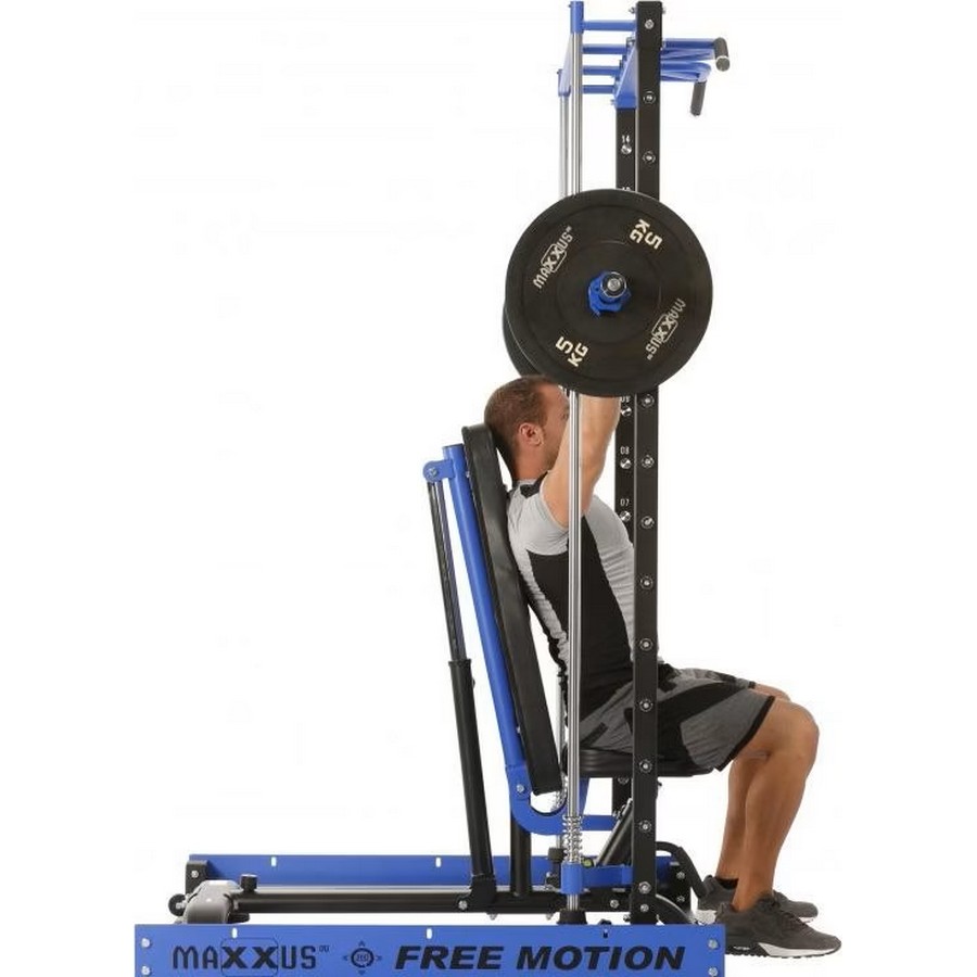 Ход грифа имеет плавные и естественные для анатомии человека движения. Это достигается за счет надежных линейных подшипников и отполированнных стальных направляющих. Безопасность тренировок - основная задача тренажера - под грифом располагаются надежные крюки-стопоры с амортизирующими стальными пружинами. Свободное вращение втулок грифа на шариковых подшипниках позволяет быстро повернуть гриф и зафиксироваться на стальных крюках.
