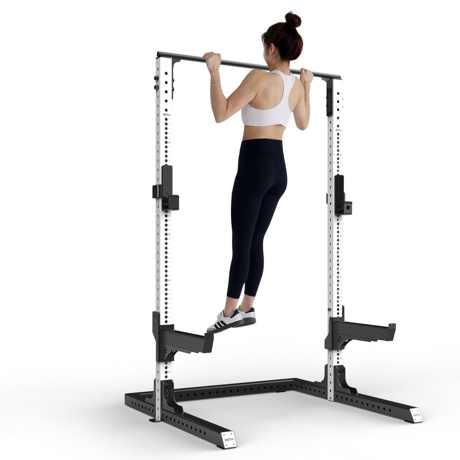 Верхняя балка тренажера оснащена турником для подтягиваний для тренировки различных групп мышц, позволяя подтягиваться узким, широким, и обратным хватами. Устойчивость и прочность столь тяжелой и мощной конструкции обеспечивают стальные уголки на вертикальных и горизонтальных опорах. Все части силовой рамы скреплены прочными оцинкованными болтами и самостопорными гайками. Рама поставляется в разобранном виде в компактной и надежной транспортной упаковке.