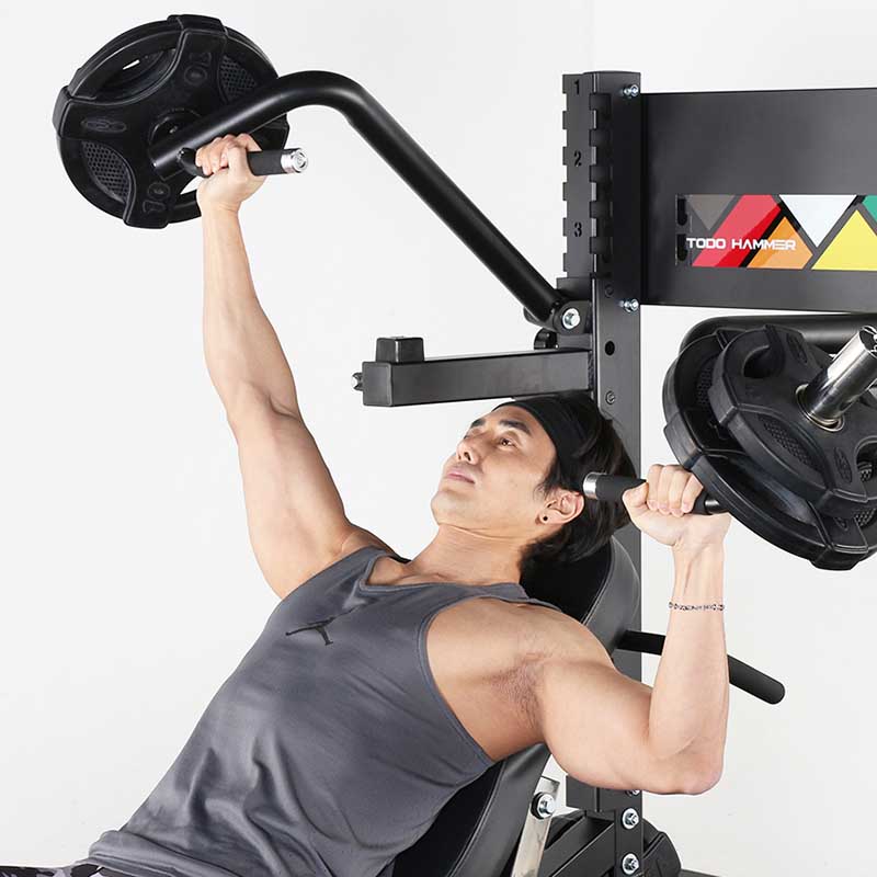 - жим штанги от плеч (гриф и диски не входят в комплект) со страховочными упорами,