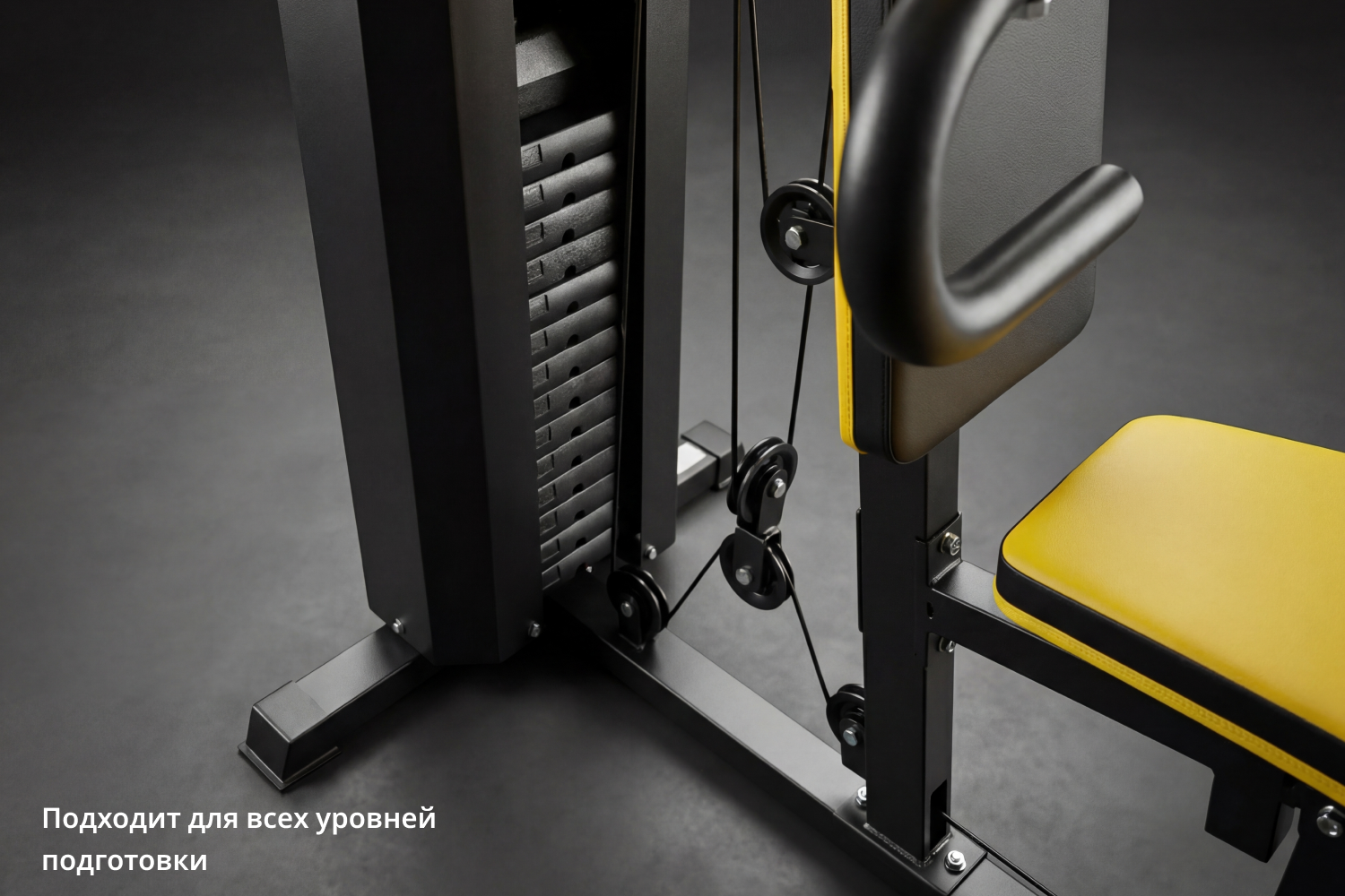 Противоскользящие опоры – предотвращают смещение во время тренировки. Мягкие подушки и упоры – снижают риск травм и повышают удобство. Плавный ход тросов и блоков – естественная амплитуда движений.Простота сборки и эксплуатации