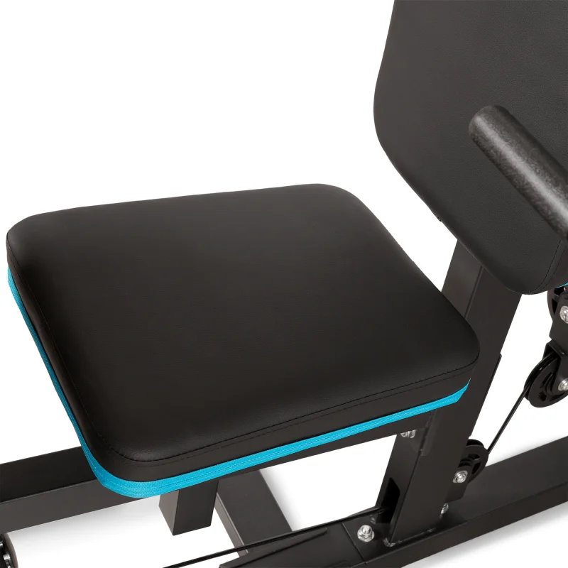 - Дополнительно Комплектация: канат для трицепса, рукоятка для тяги сверху, манжета для ноги, прямая рукоятка. неопреновые валики - 4 для ног (ф 8.5), 2 - для рук (ф 9). Размеры подушек: парта бицепса – 30*40*5 (7) см. спинка – 32*60*5.5 см сиденье – 39*35*5.5 см. 4 уровня регулировки сиденья по высоте.