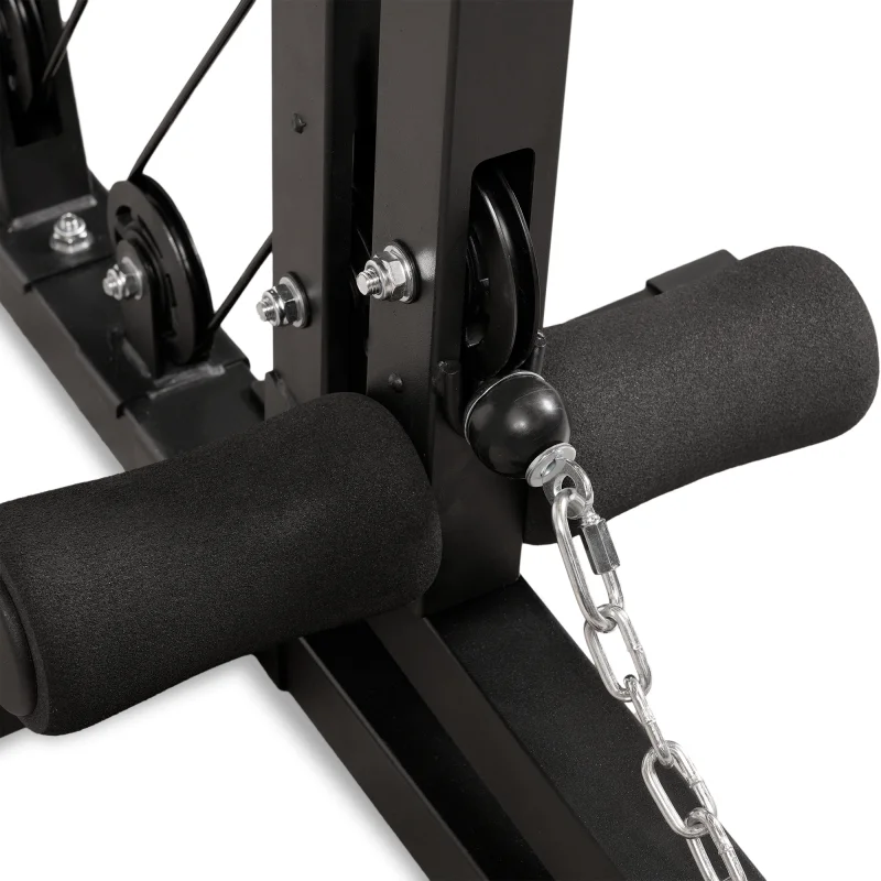 - Дополнительно Комплектация: канат для трицепса, рукоятка для тяги сверху, манжета для ноги, прямая рукоятка, парта бицепса, неопреновые валики - 4 для ног (ф 8.5), 2 для рук (ф 9). Размеры подушек: парта бицепса – 30*40*5 (7) см, подголовник – 24*24*5 см, спинка – 30*50*5.5 см, сиденье – 39*35*5.5 см, 4 уровня регулировки по высоте. Жим ногами: регулировка - 5 ур.по высоте, 5 – по длине, место для ног – 35*45 см.