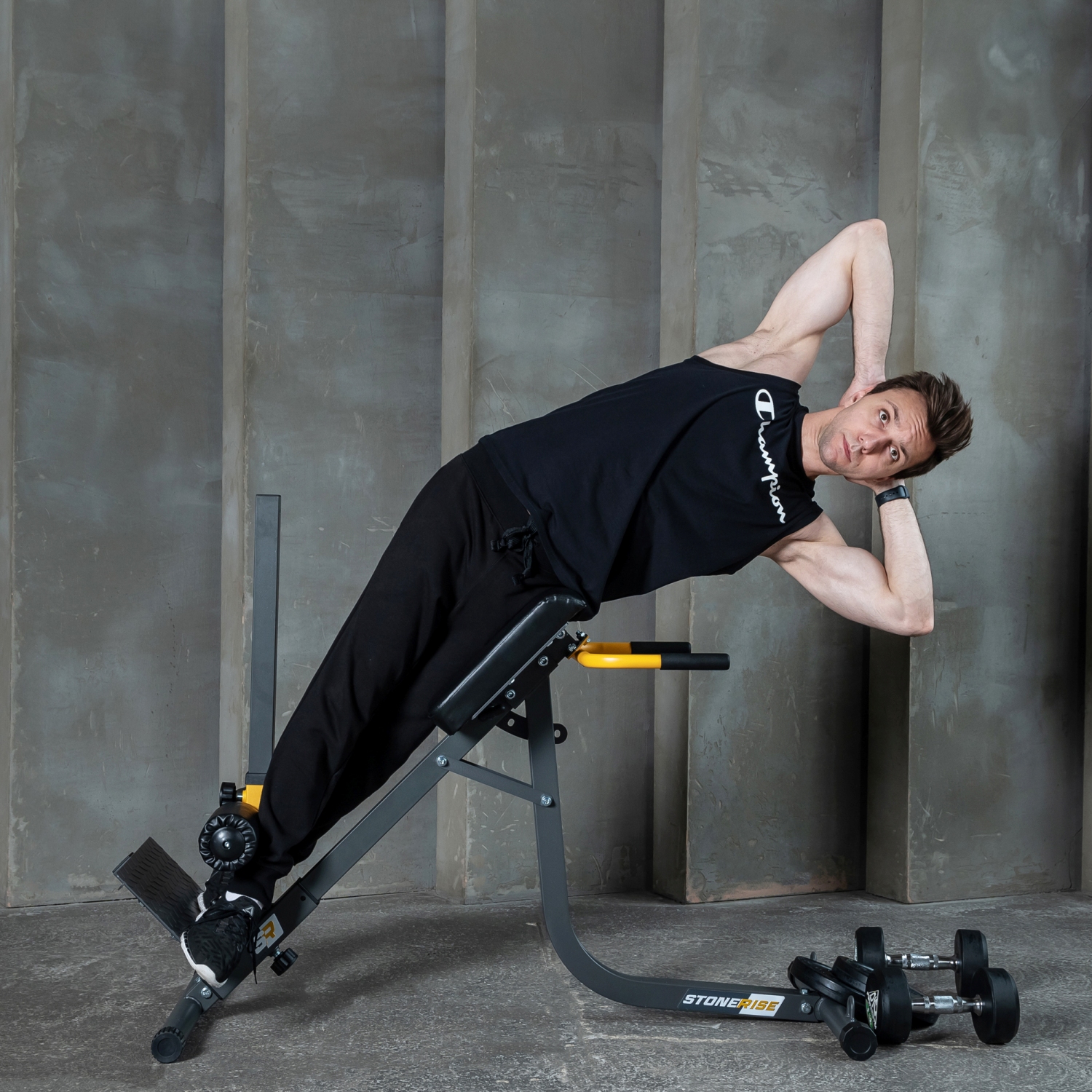 Гиперэкстензия STONERISE HypeRise — это тренажёр, который используют для проработки мышц спины и бёдер. Тренажёр сконструирован таким образом, что позволяет выполнять гиперэкстензию в классической горизонтальной и обратной техниках.