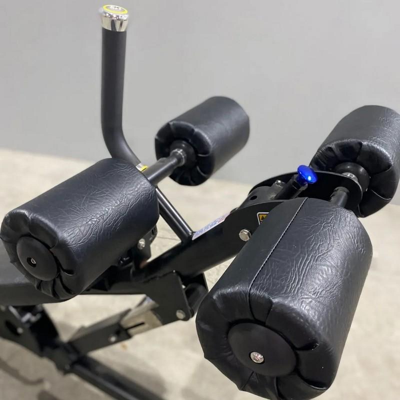 Комфорт и стабильность при выполнении упражнений на скамье обеспечивает длинная спинка с подголовником и подушка для бедер, которые снижаю давление на позвоночник и поясничный отдел. Две пары мягких валиков надежно фиксируют ноги спортсмена.