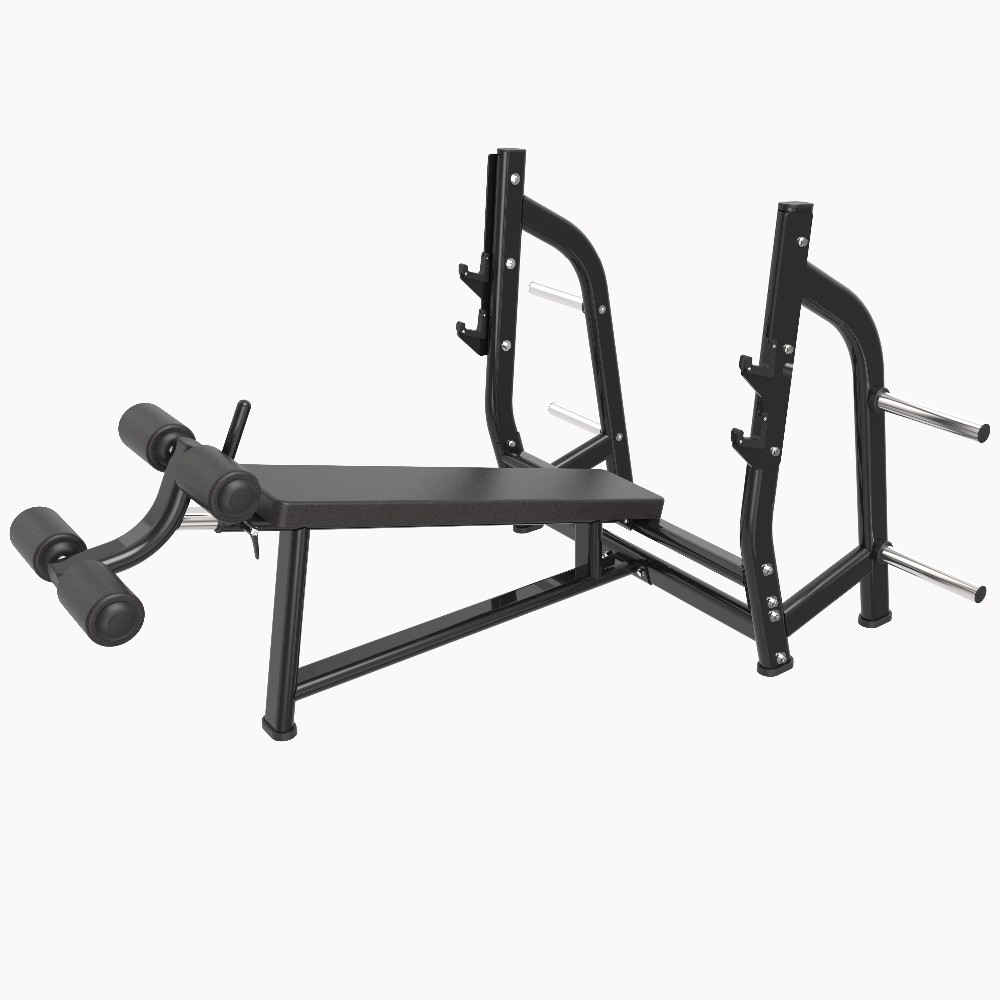 Профессиональная скамья олимпийская с обратным наклоном Insight Fitness TN73 для жима штанги в положении лежа под отрицательным углом: -15 градусов. Упражнения направлены на развитие нижнего отдела большой грудной мышцы.