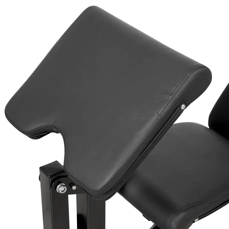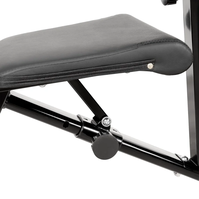 - Дополнительно накопитель для дисков ф 25, замок для дисков, 2 неопреновых валика для ног ф 6*12. Регулировка: парты бицепса - 3 уровня. Размеры подушек: сиденье - 36*36*4, спинка - 73*28.5*4, парта бицепса - 40*32*4.