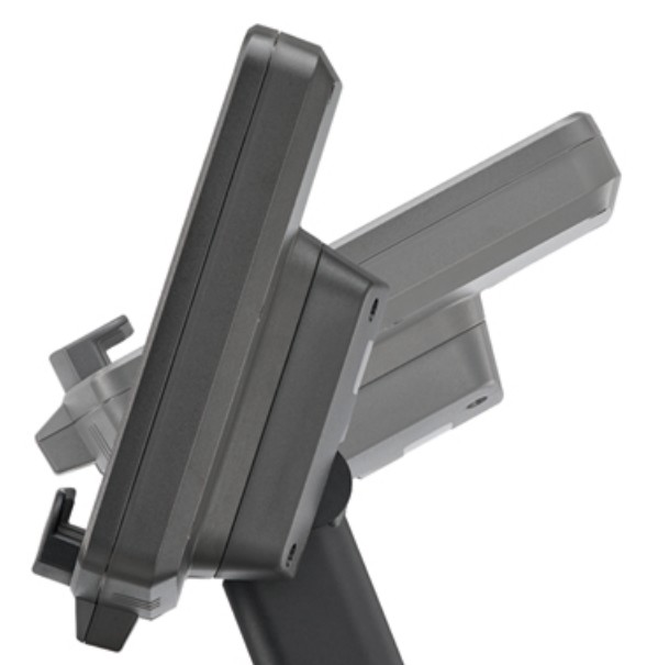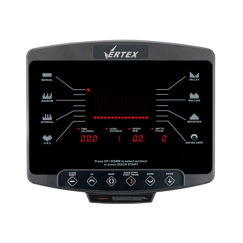 Консоль с контрастной красной подсветкой снабжена следующими дисплеями - большой, матричный светодиодный (диагональ 13,5 см) для отображения диаграммы тренировки, информации об ошибках и вспомогательных данных при настройке программ и 4 вспомогательных LCD окошка, которые показывают время тренировки, калории, уровень нагрузки, скорость, об/мин, нагрузку в Вт и пульс.