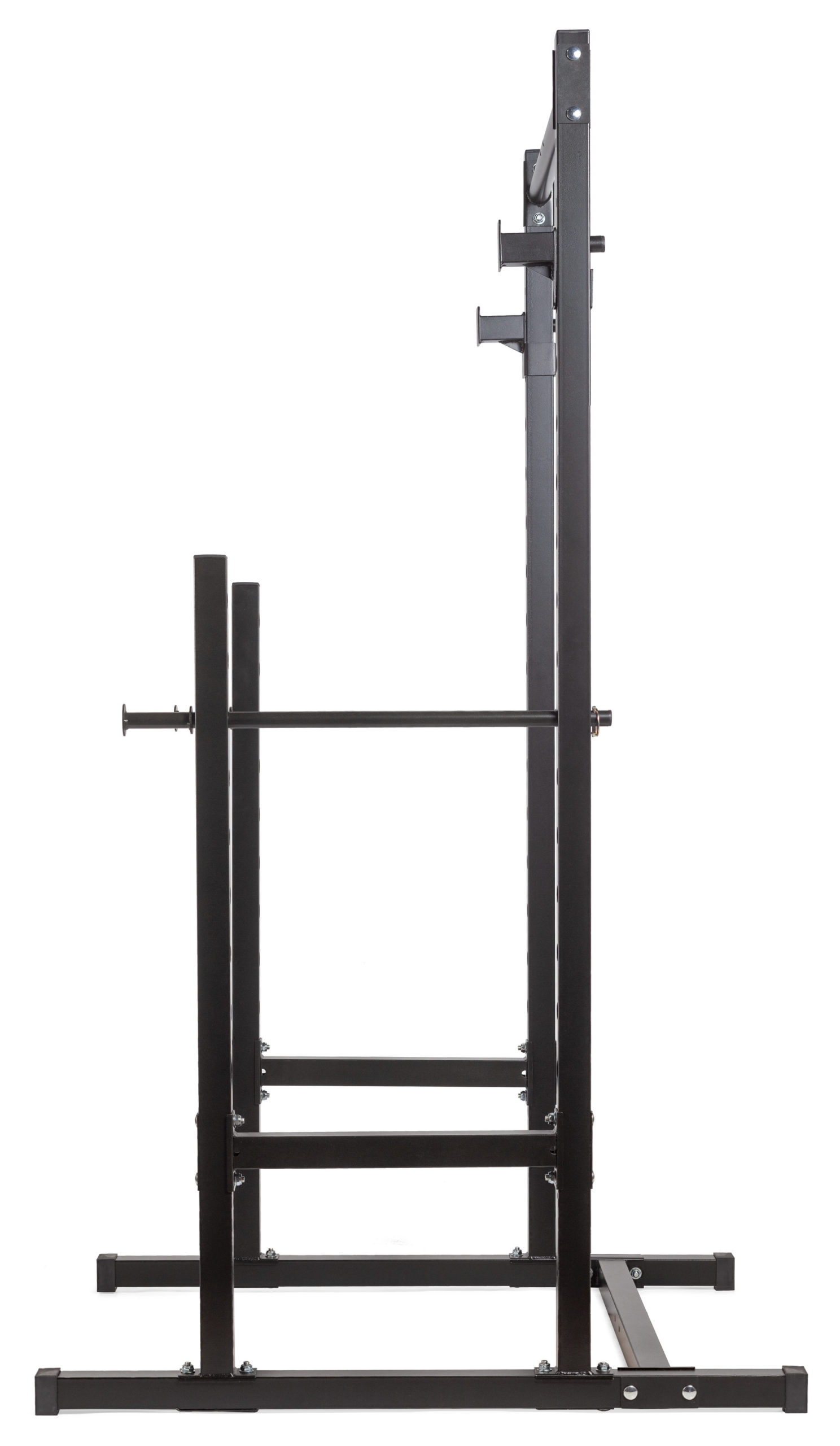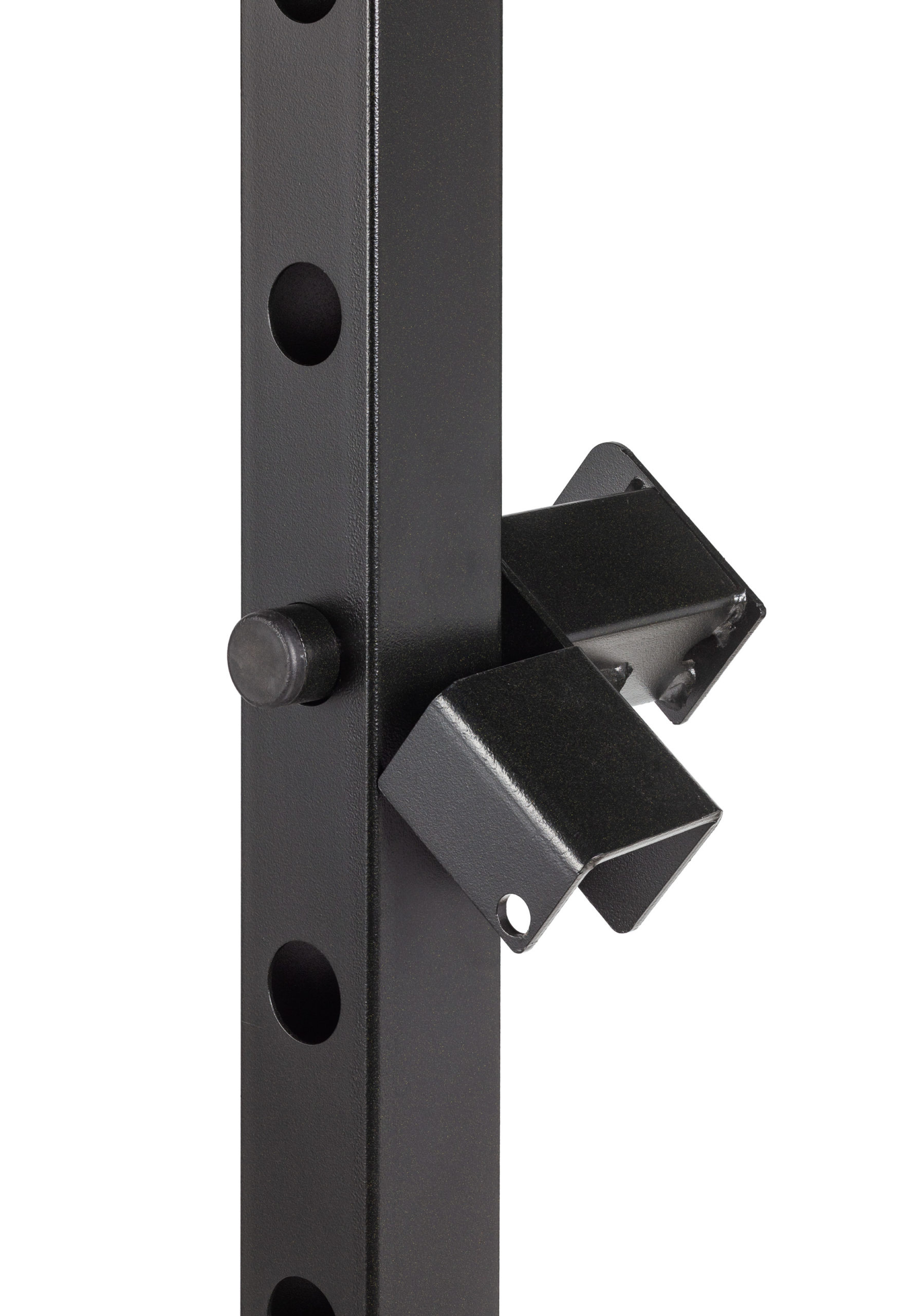 Изготовлена из стального профиля 50×50 мм с толщиной стенки 1,5 мм Максимальная нагрузка – 250 кг, что обеспечивает безопасность при работе с большими весами Стойка окрашена в черный цвет, защищена от коррозии, что увеличивает срок службыОптимальные габариты для комфортных тренировок