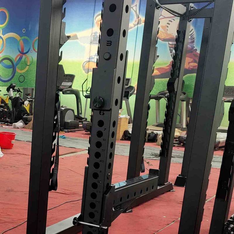 Расстояние между вертикальными стойками позволяет использовать силовую скамью для выполнения жимов лежа и других упражнений. Страховочные плинты увеличенного размера с 22 позициями регулировки обеспечивает безопасную поддержку штанги, крепятся к раме надежными кронштейнами из 6 мм стали, покрыты двумя слоями прочного защитного покрытия.