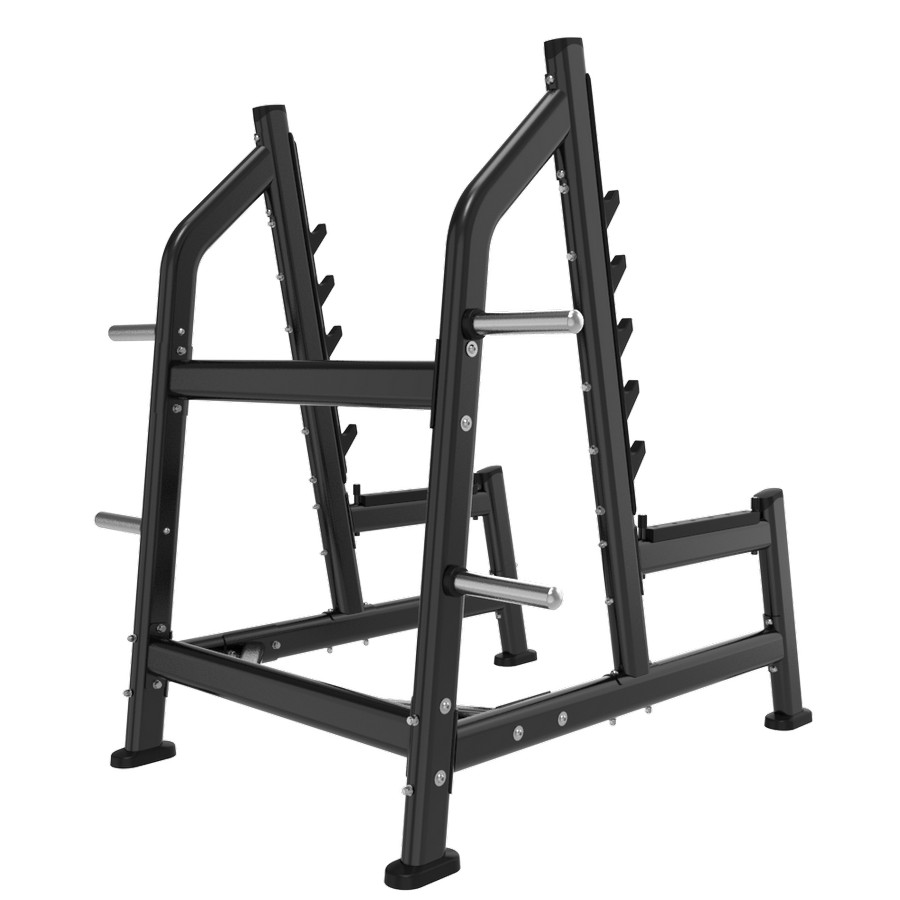 Стойка для выполнения безопасных приседаний со штангой Insight Fitness BH49 имеет 5 уровней для фиксации грифа. Это позволяет комфортно проводить силовые тренировки пользователем с разным ростом и безопасно снимать снаряд с крюков. Страховочные плинты служат для выполнения упражнений с большими весами без страхующего. Выполнены из высокопрочной стали и выдерживают нагрузку до 400 кг. Держатели штанги сделаны из цельнолитого сверхпрочного ABS-пластика, плинты покрыты резиновыми амортизаторами, которые защищают раму и гриф от сколов и повреждений.