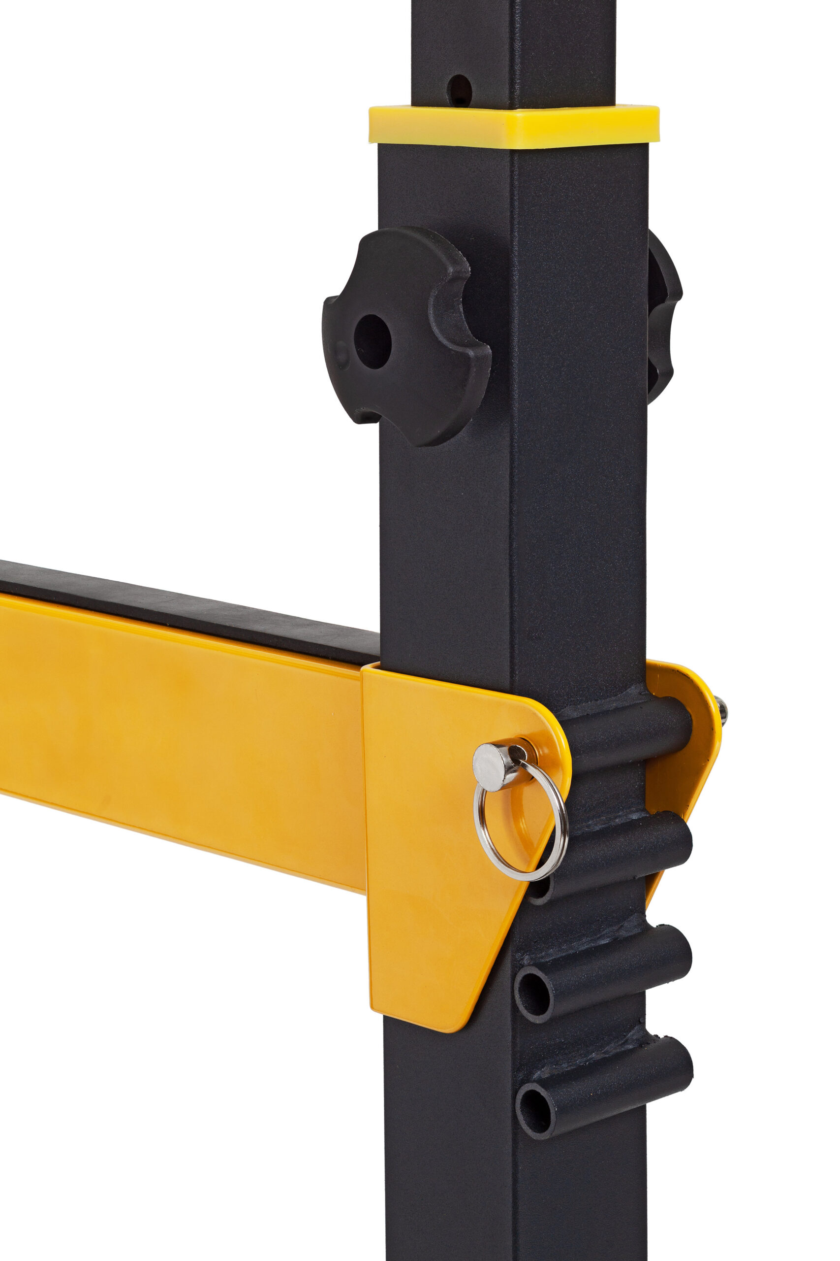 Ключевые преимущества:Максимальная нагрузка 150 кг – надежная конструкция выдерживает серьезные веса, подходит для силового тренинга. Регулировка по ширине (71–120 см) и высоте (86–156 см) – адаптируется под любой рост и размер грифа. Съемные страховочные платформы (28 см) – дополнительная защита при работе с большими весами. Прочная стальная рама (50×50 мм, толщина 1.5 мм) – устойчивость и долговечность. Прорезиненные ножки – предотвращают скольжение и повреждение пола. Компактные размеры в рабочем состоянии (85×81-130×96-176,5 см) – удобство размещения даже в домашнем спортзале.