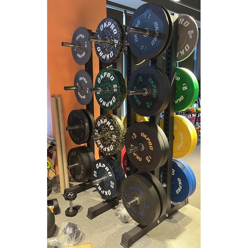 Вертикальная стойка (стеллаж) для дисков OKPRO OK0040 предназначена для компактного и удобного хранения олимпийских дисков в коммерческих залах (24 комплекта). Предназначена для профессионального использования. Двухсторонняя стойка снабжена 24 держателями для блинов с посадочным диаметром 50 мм, места для хранения предназначены для весов от 2,5 до 25 кг. Каждый держатель хромирован, снабжен резиновым кольцом для защиты рамы и дисков от повреждений. Адаптеры обеспечивают безопасное хранение и легкое снятие блинов, благодаря скругленным торцам.