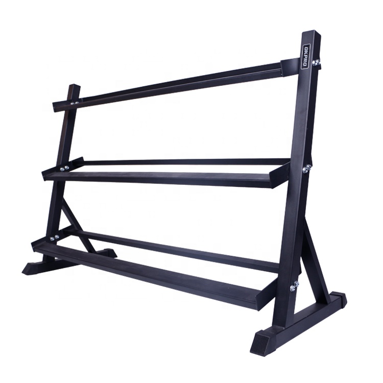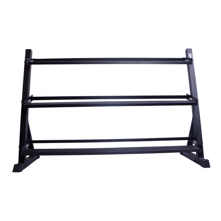 Горизонтальная трехъярусная стойка для хранения гантелей. Подходит для хранения гексагональных гантелей малых и больших весов (10-15 пар).