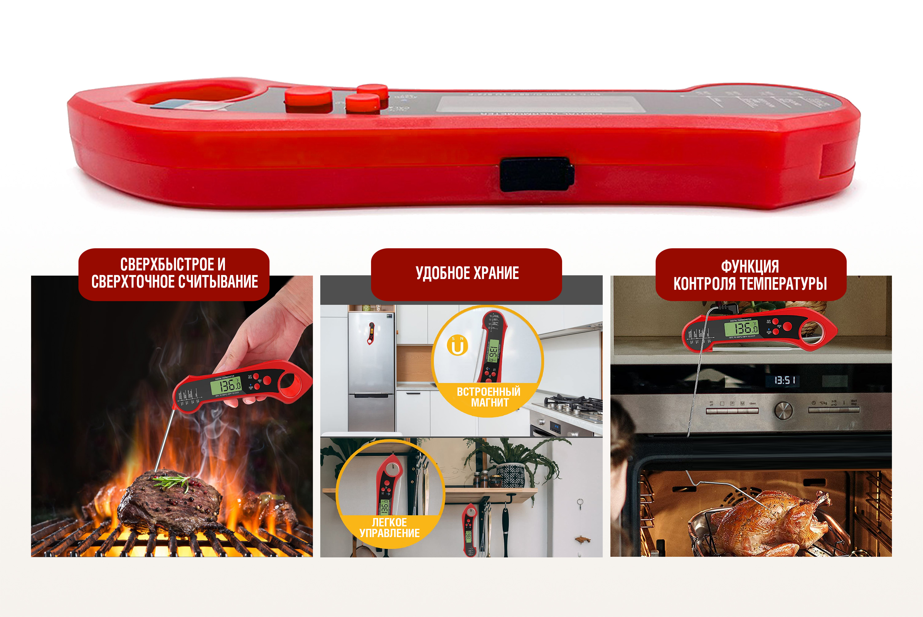 Цифровой термометр Model 2, складной, с дополнительным подключаемым щупом, красный