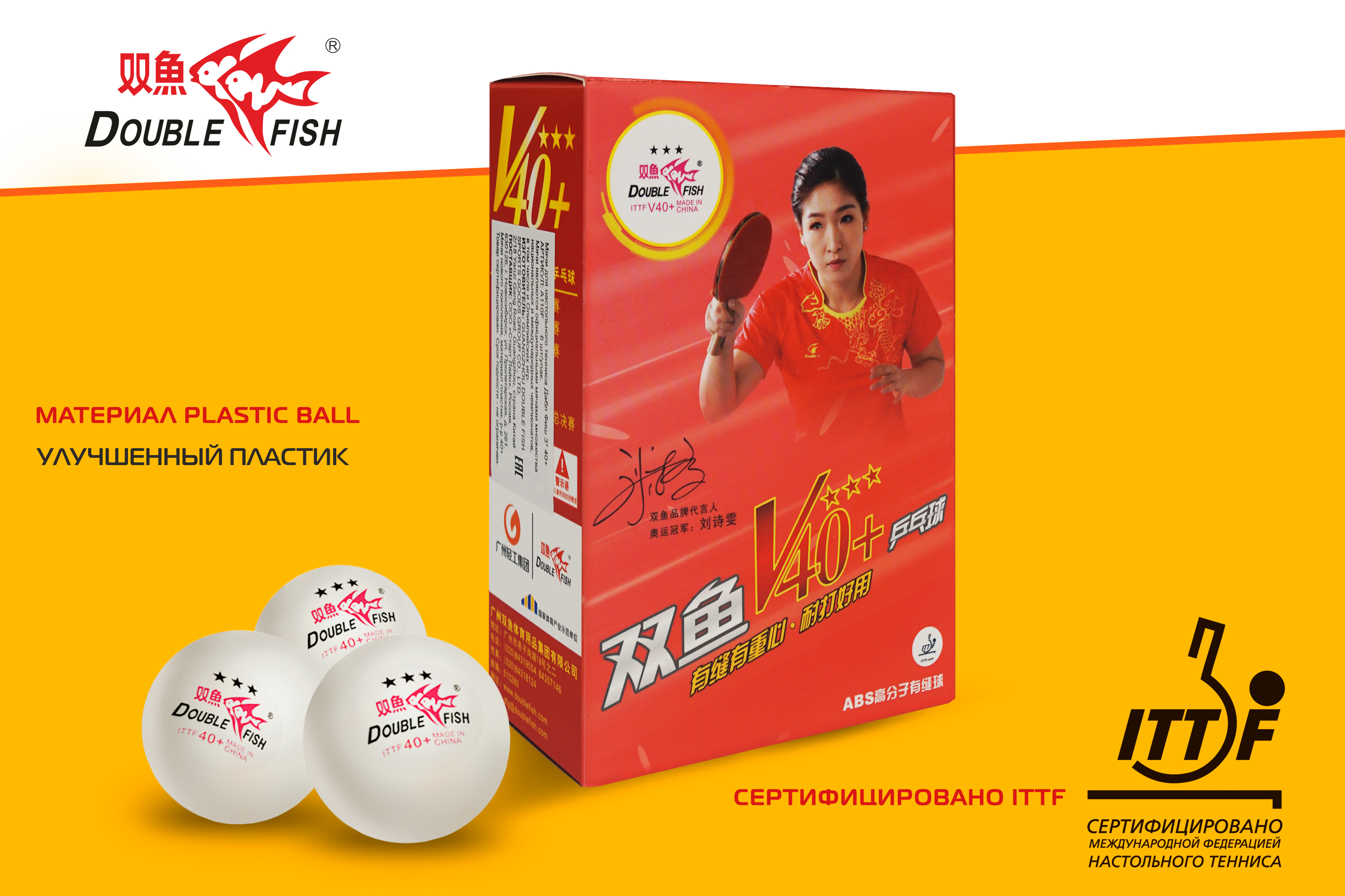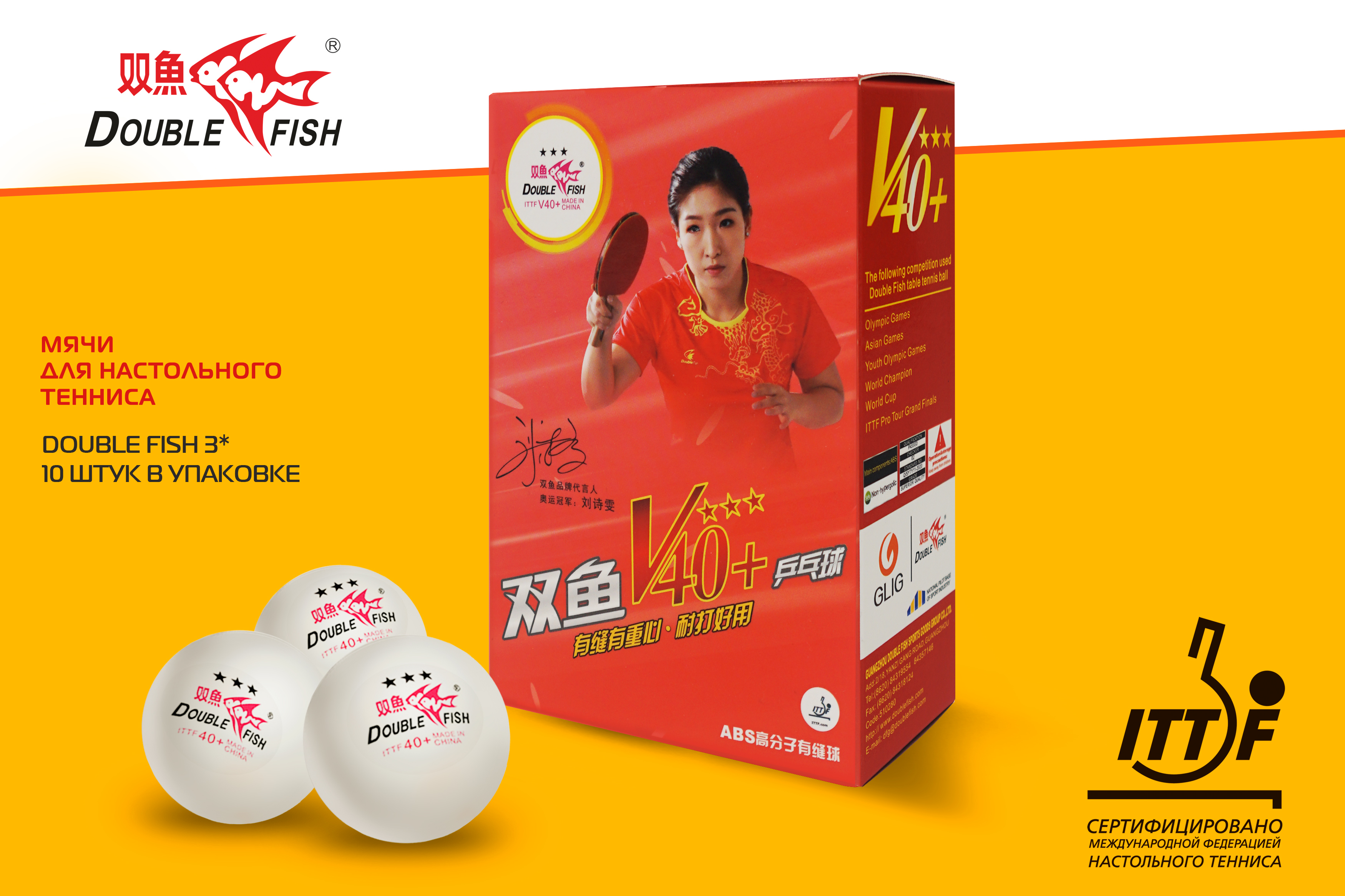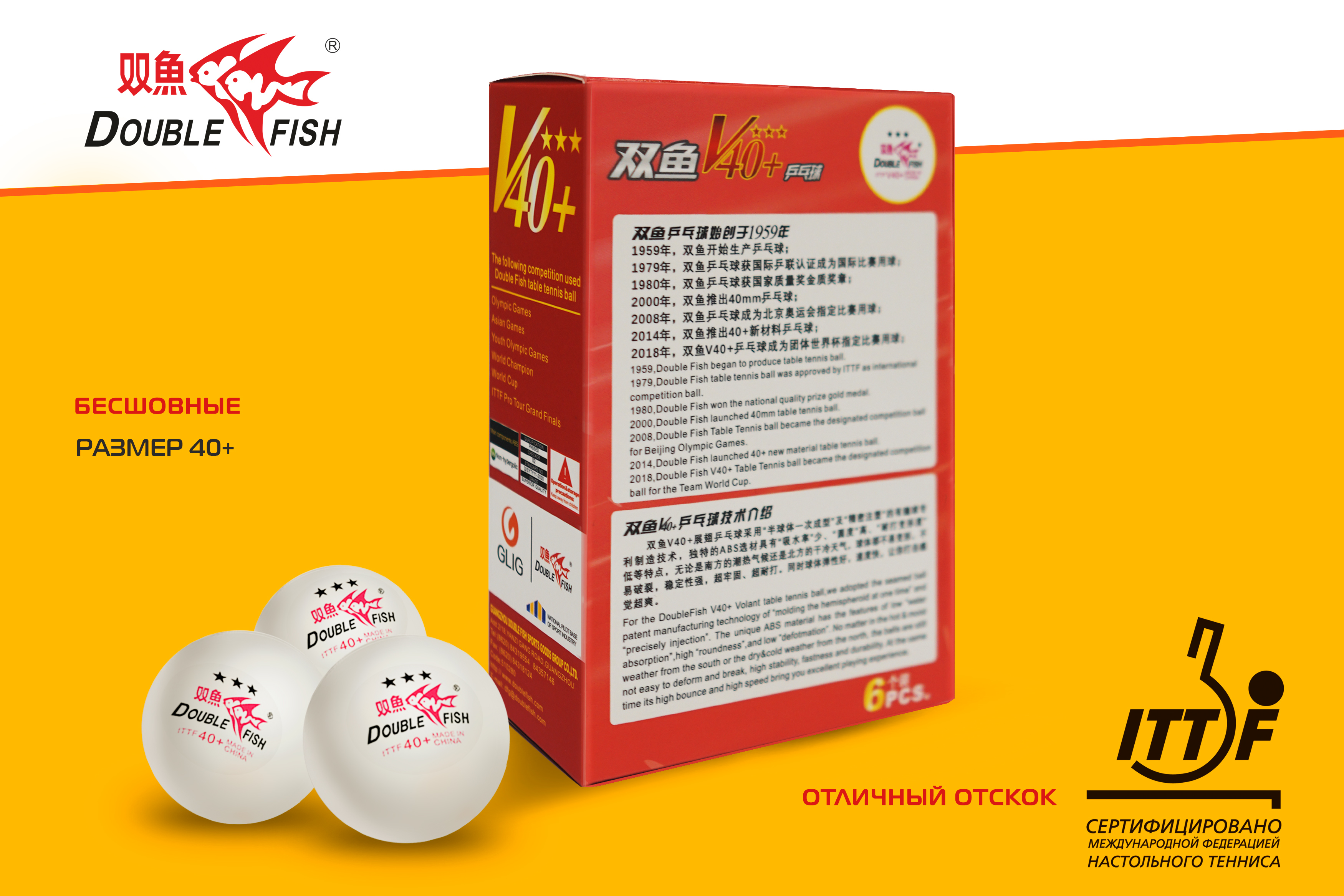 Мячи для н/т Double Fish 3* Volant (6 шт/упак.) р-р.40+