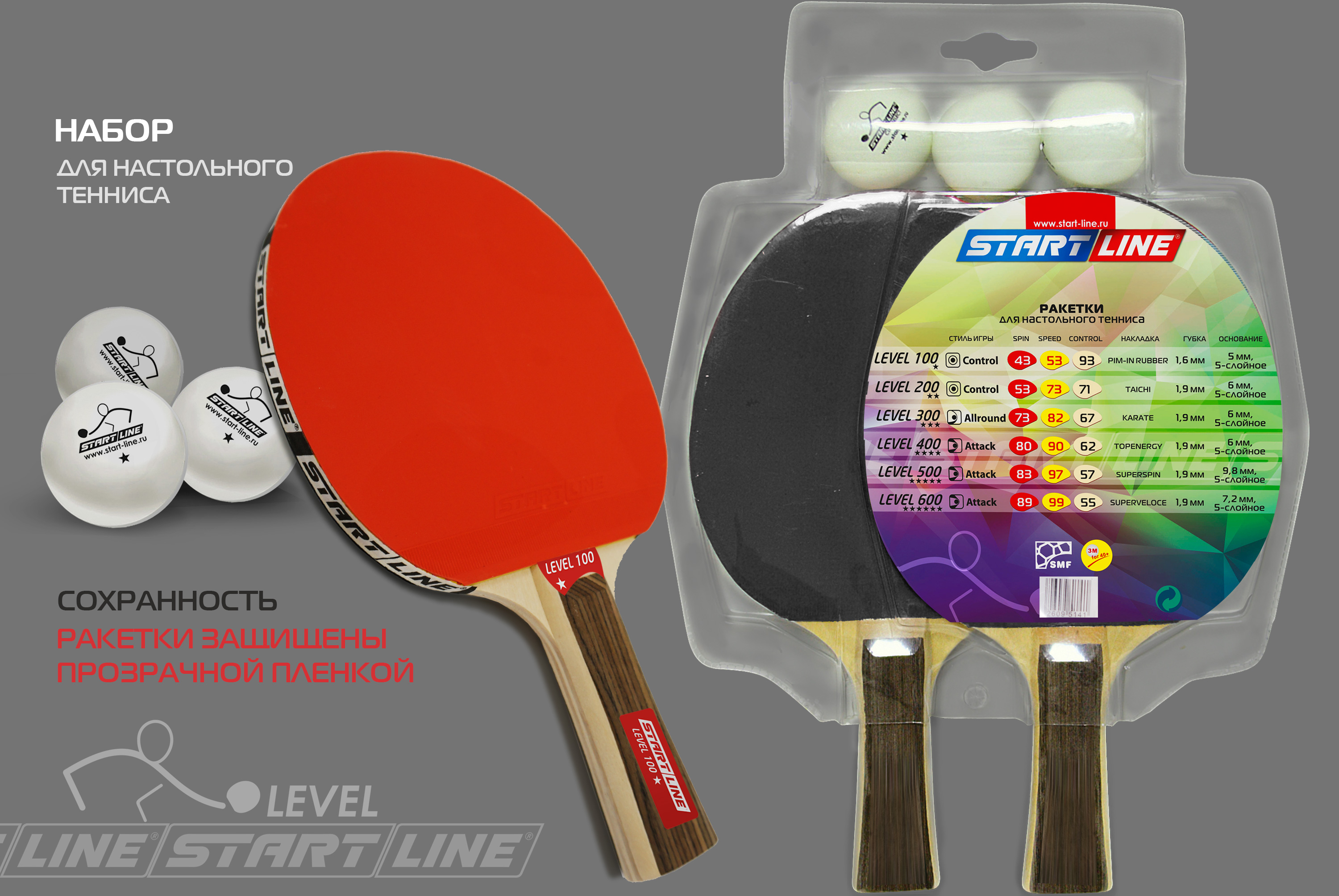 Набор 2 р-ки Level 100, 3 мяча Club Select