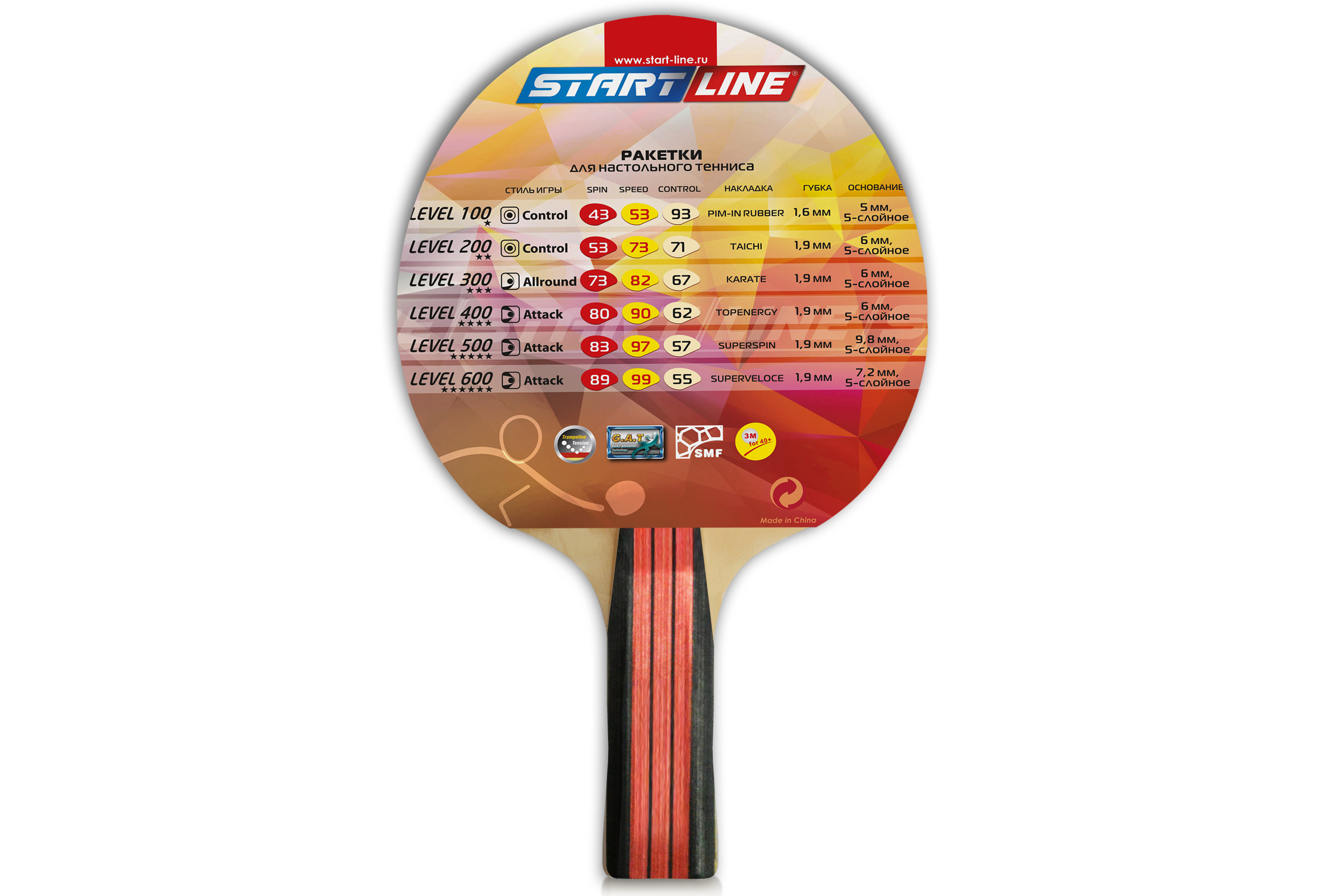 Ракетка для настольного тенниса Level 200 соответствует высокому современному стандарту качества, имеет обновленный дизайн, а также улучшенные технологические и игровые характеристики.