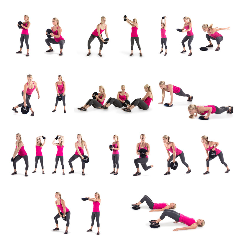 Для того, чтобы найти массу упражнений с диском-утяжелителем достаточно набрать в поисковике "sandbell exercises".