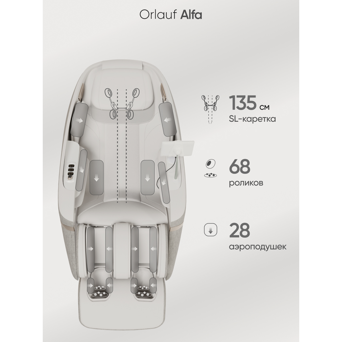 Orlauf Alfa — массажное кресло, отличающееся системой голосового управления с искусственным интеллектом IntelliGuide™ и обивкой из натуральной ткани Welwes™. Новая модель на рынке массажных кресел претендует на почетное первое место среди оборудования с 4D-массажем.