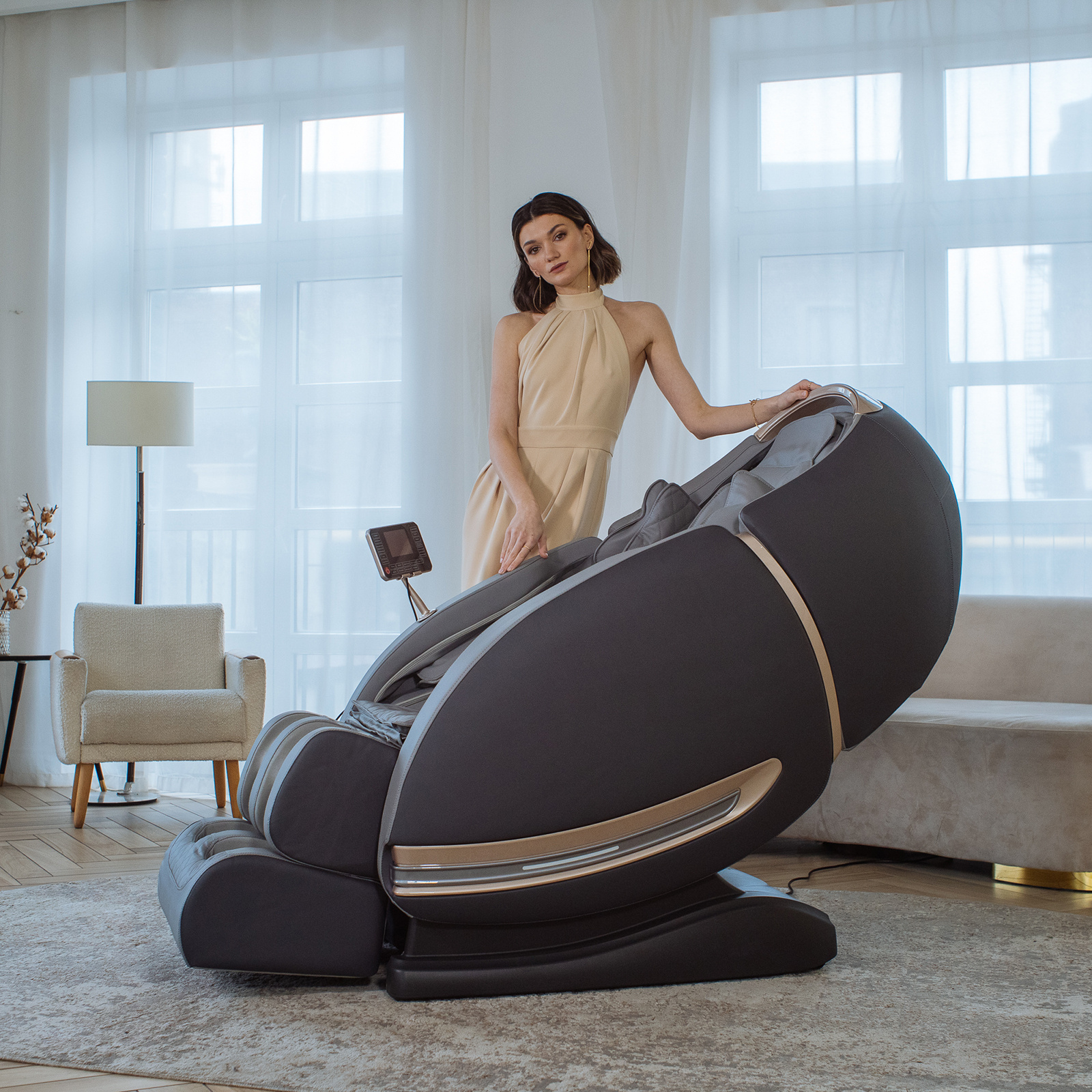 Orlauf Elfen предлагает широкие возможности для персонализации массажа: 5 автоматических программ и 8 ручных режимов. Функция одновременного прогрева поясницы и икр усиливает расслабляющий эффект, а положение Zero-G снимает нагрузку с позвоночника, создавая ощущение невесомости. Продуманная эргономика, включающая выдвижную секцию для ног закрытого типа (выдвигается на 15 см), систему Smart-Slide для экономии пространства (выдвигает кресло на 17 см от стены), интуитивно понятный русифицированный планшет для управления и таймер, обеспечивает максимальный комфорт во время сеанса.