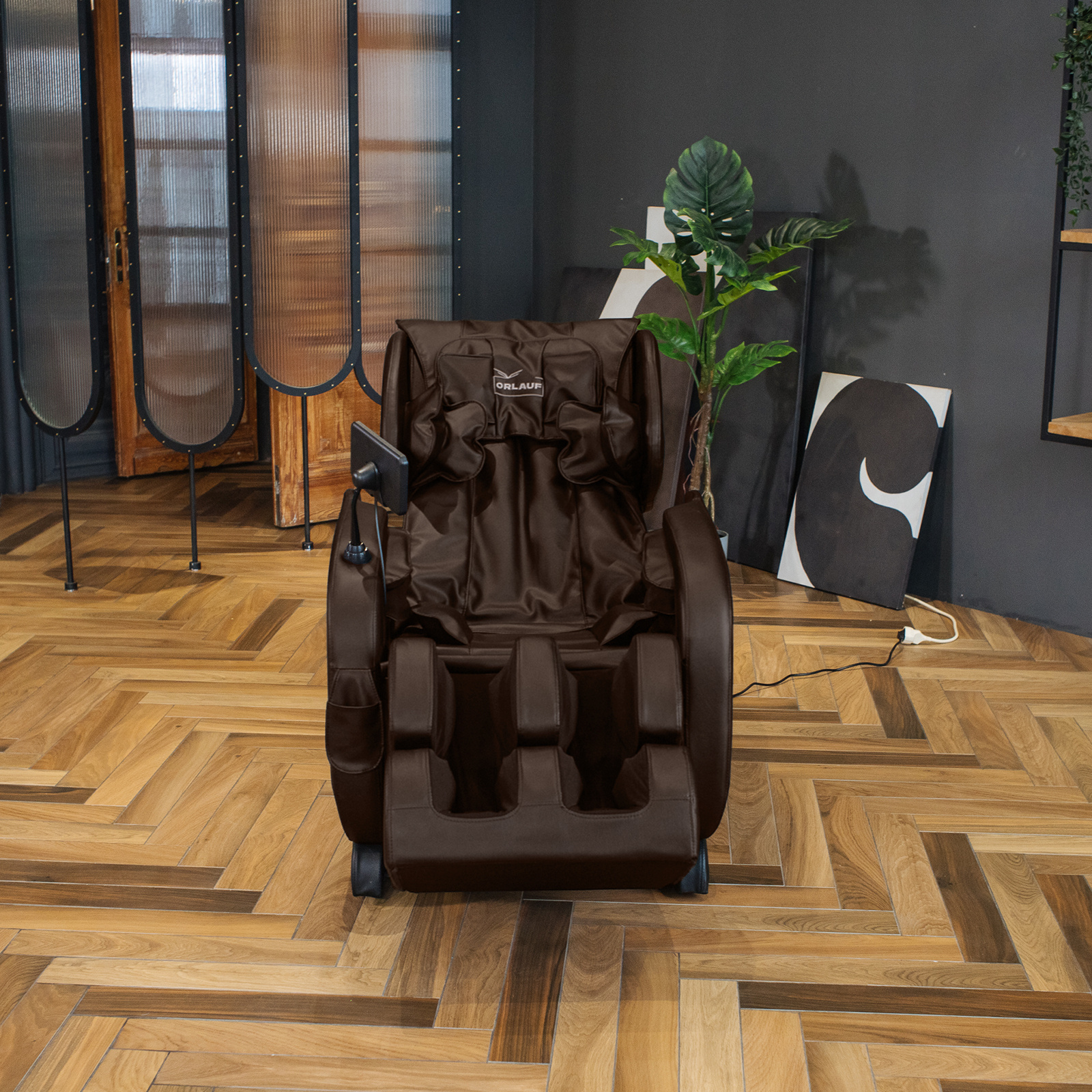 Orlauf Momo предлагает 6 автоматических программ массажа. Управление осуществляется через русифицированный интуитивно понятный планшет. Встроенные Bluetooth-колонки позволяют наслаждаться любимой музыкой во время сеанса массажа. Прогрев поясницы и икр усиливает комфорт и способствует глубокому расслаблению мышц.
