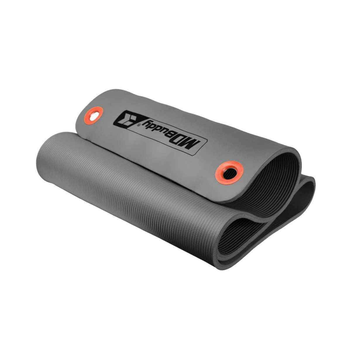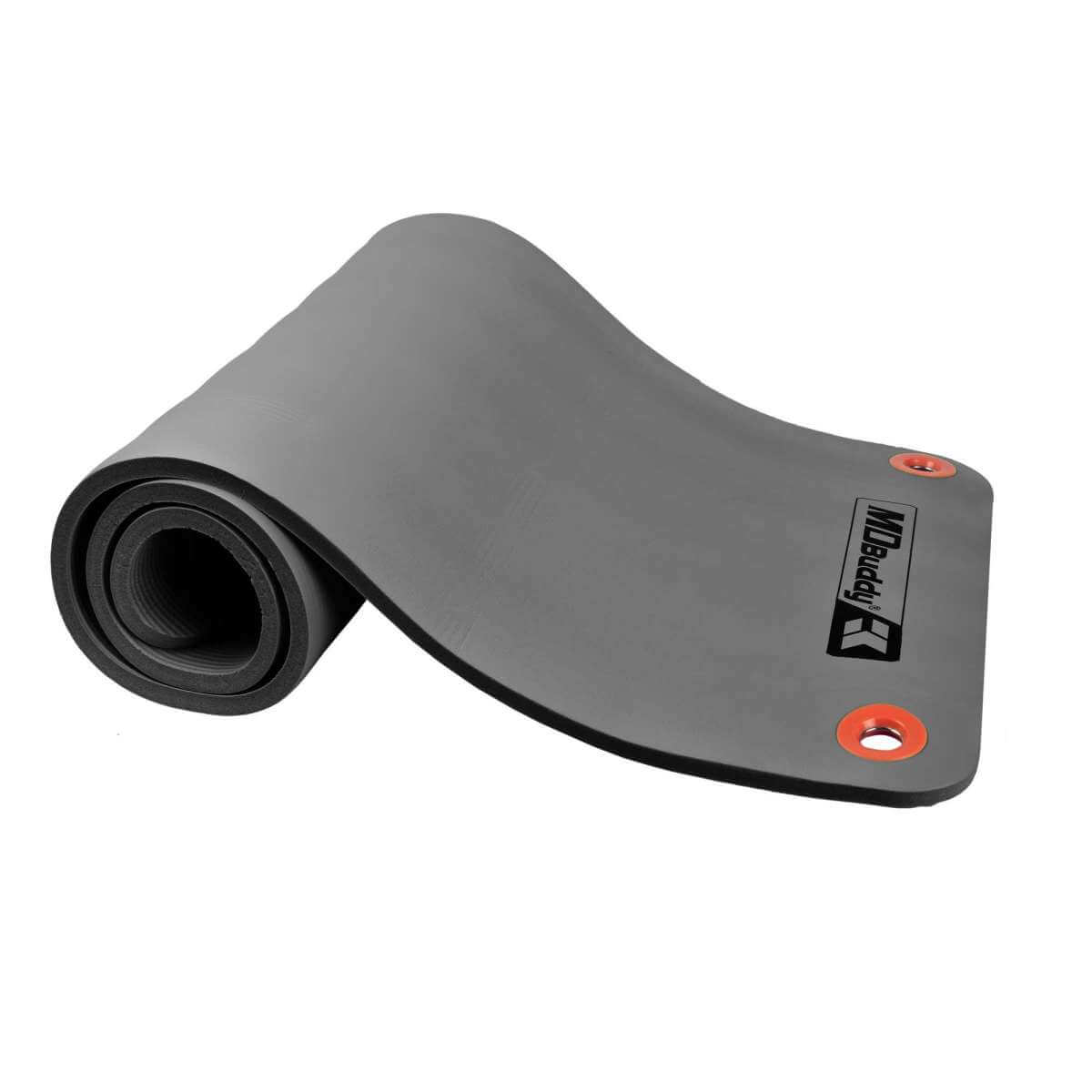 Коврик для пилатеса, аэробики и йоги MD Buddy MD9004 (серый) сделан из экологически чистой синтетической резины NBR (бутадиен-нитрильный каучук). Прочный, влагостойкий, долго и хорошо сохраняет форму. Легко моется, имеет отверстия с люверсами для настенного хранения.