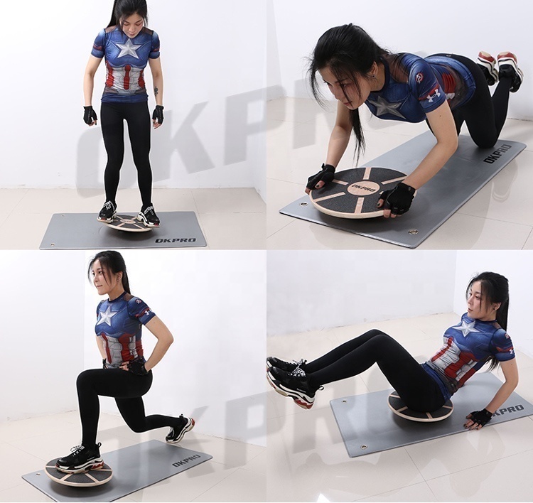 Размер: 39*7,5 см. Балансировочная платформа сделана из высококачественной березы, способны выдерживать нагрузки до 200 кг, поверхность покрыта нескользящим материалом, на платформе можно поворачиваться на 360 градусов и наклоняться на 10-20 градусов.