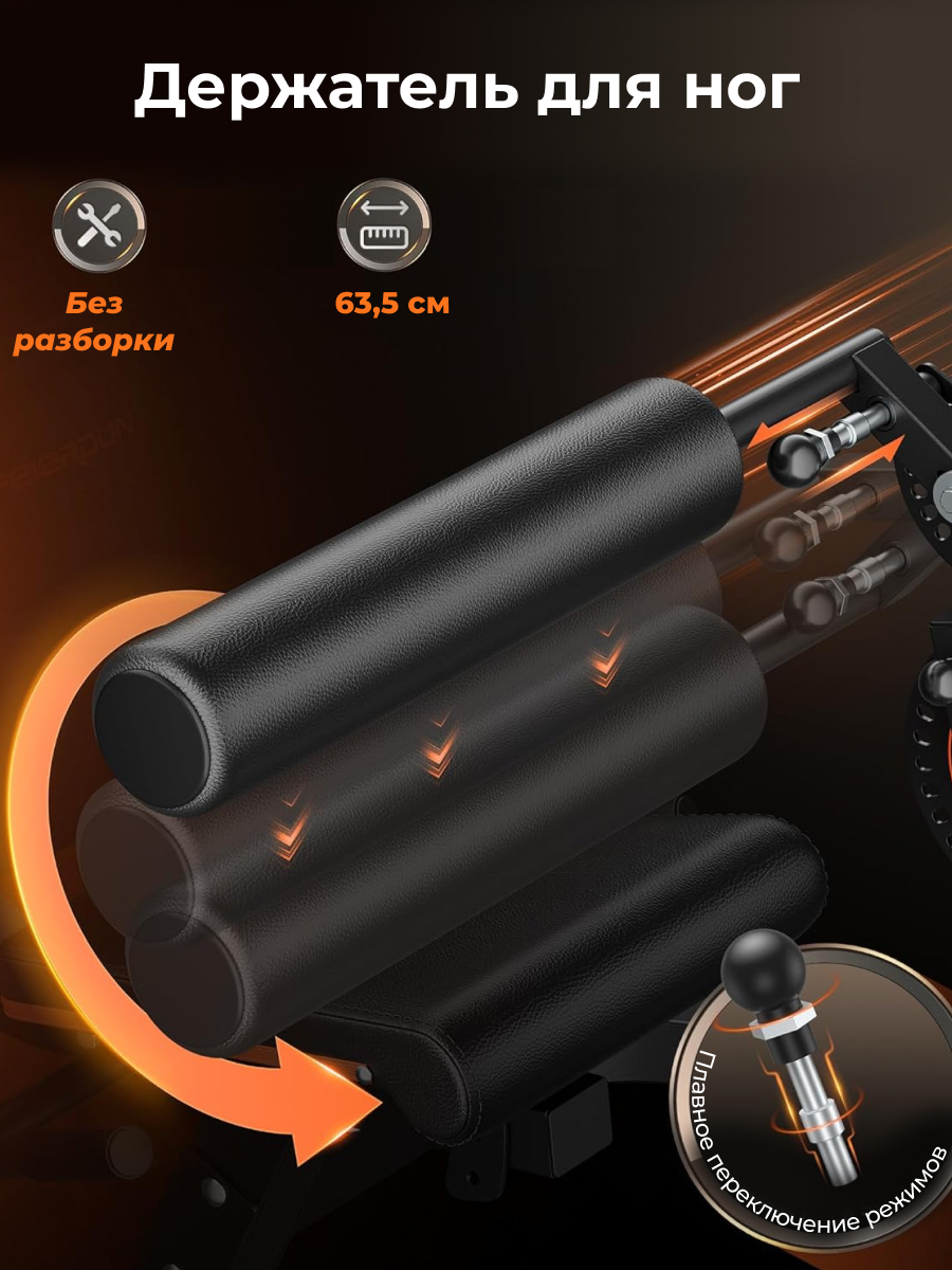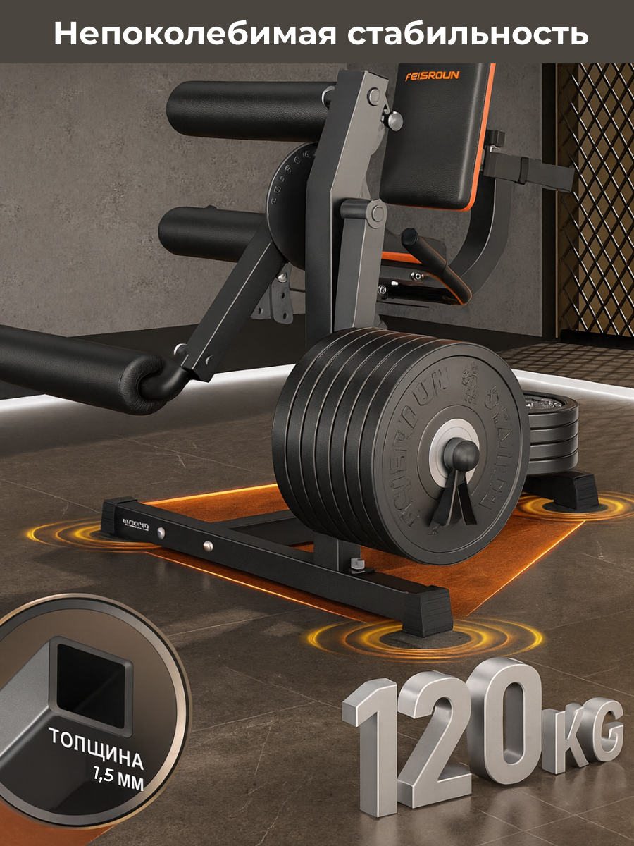 Тренажёр оснащён прочной рамой и качественной обивкой, что гарантирует долговечность и комфорт даже при регулярных занятиях. Эргономичный дизайн обеспечивает правильное положение тела во время упражнений, снижая нагрузку на суставы и спину, а плавная регулировка всех элементов позволяет адаптировать тренажёр под индивидуальные потребности каждого пользователя.