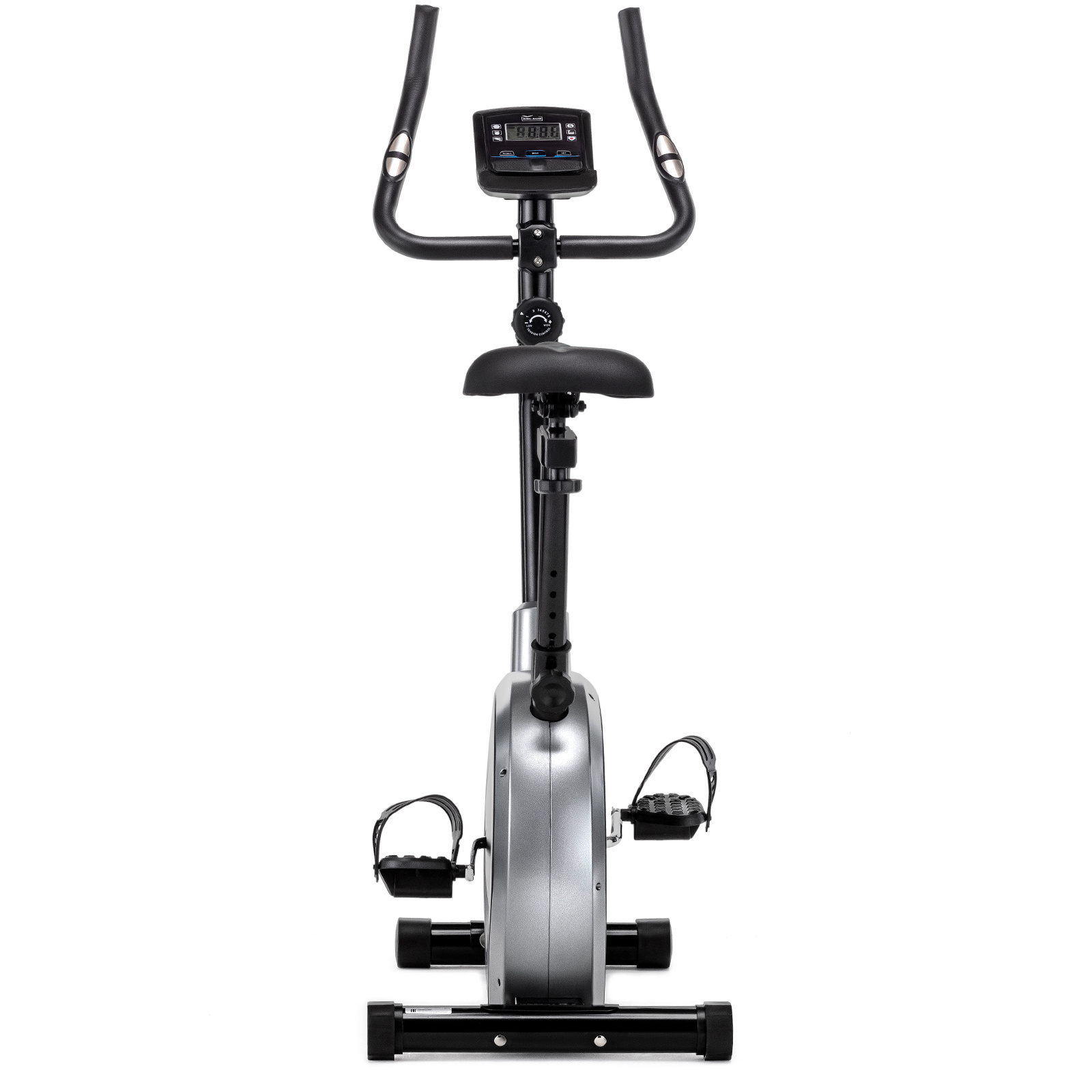 Велотренажер разработан с учетом анатомических особенностей: вертикальная посадка снижает нагрузку на спину и суставы, а педали с рифленой поверхностью и регулируемыми ремешками создают надежную фиксацию стопы. Информативный дисплей отображает все необходимые параметры тренировки, включая пульс, который измеряется встроенными сенсорными датчиками.