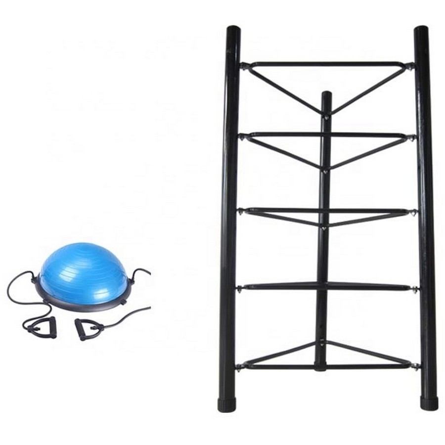 Стойка для хранения балансировочных полусфер OKPRO OK0075 - пятиуровневый стеллаж с широкой и прочной конструкцией вмещает 5 босу-платформ. Подставка предоставляет удобный доступ к тренировочному инвентарю и экономит пространство в спортивном зале.