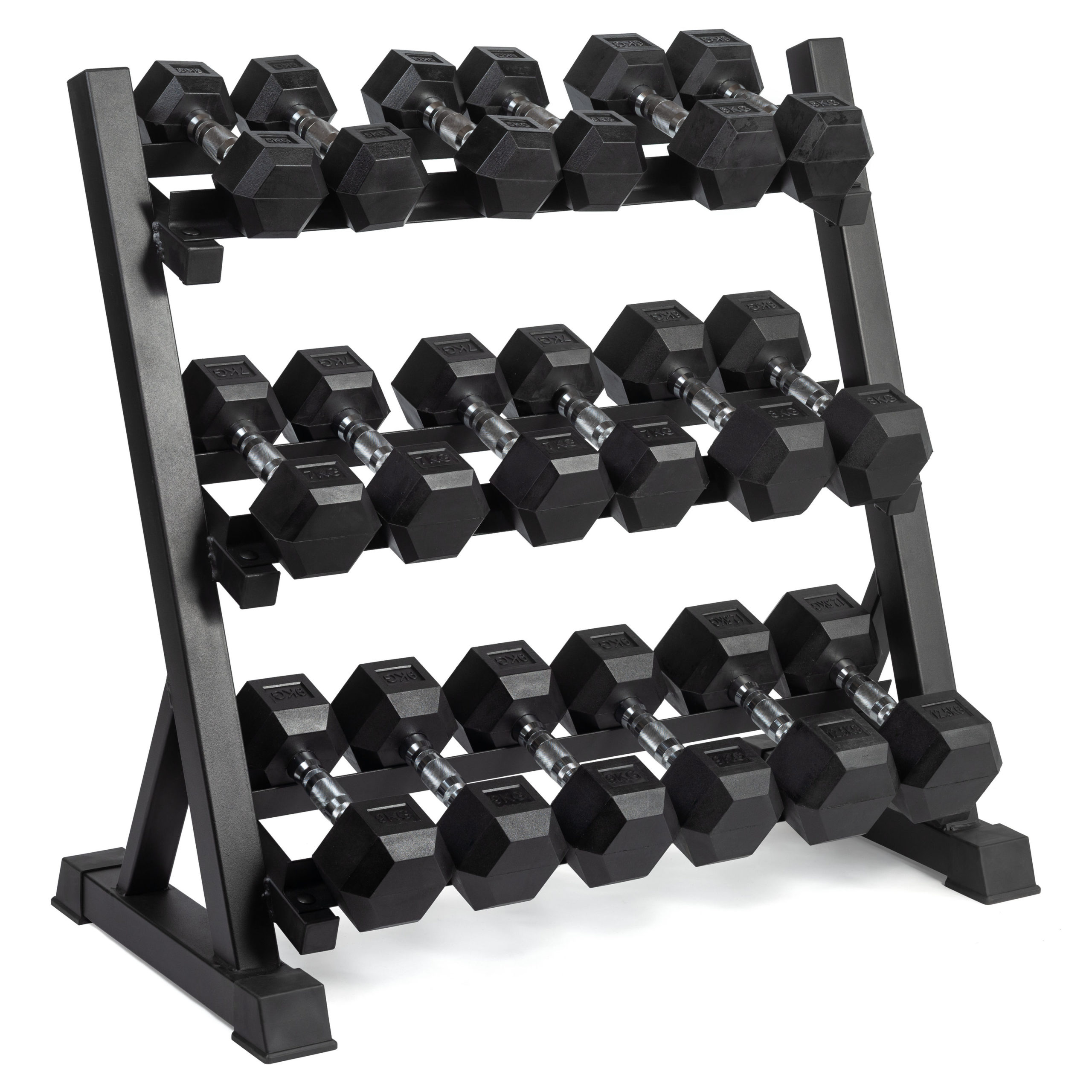 Ключевые преимущества:Высокая грузоподъёмность – выдерживает до 200 кг, что позволяет разместить полный набор гантелей для интенсивных тренировок. Надёжность и долговечность – изготовлена из прочной стали, устойчивой к деформациям и износу. Компактные размеры (97×58×92 см) – занимает минимум места, идеально впишется в любое пространство. Удобная конструкция – обеспечивает лёгкий доступ к гантелям и предотвращает их падение. Простота сборки и транспортировки – вес всего 17 кг, а в упаковке (122×52×12 см) легко перевезти.