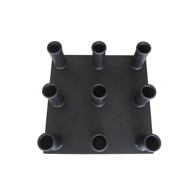 Напольная стойка OKPRO OK0029 предназначена для компактного вертикального хранения 9 грифов с посадочной втулкой 50 мм. Изготовлена из 6 мм стали. 9 отверстий для грифов снабжены втулками из ABS-пластика, которые облегчают постановку снаряда и предотвращают повреждения рукавов грифа. Гладкая внутренняя поверхность изготовлена без заусенцев и сварных стыков, что в свою очередь обеспечит защиту рукоятки грифа от царапин.