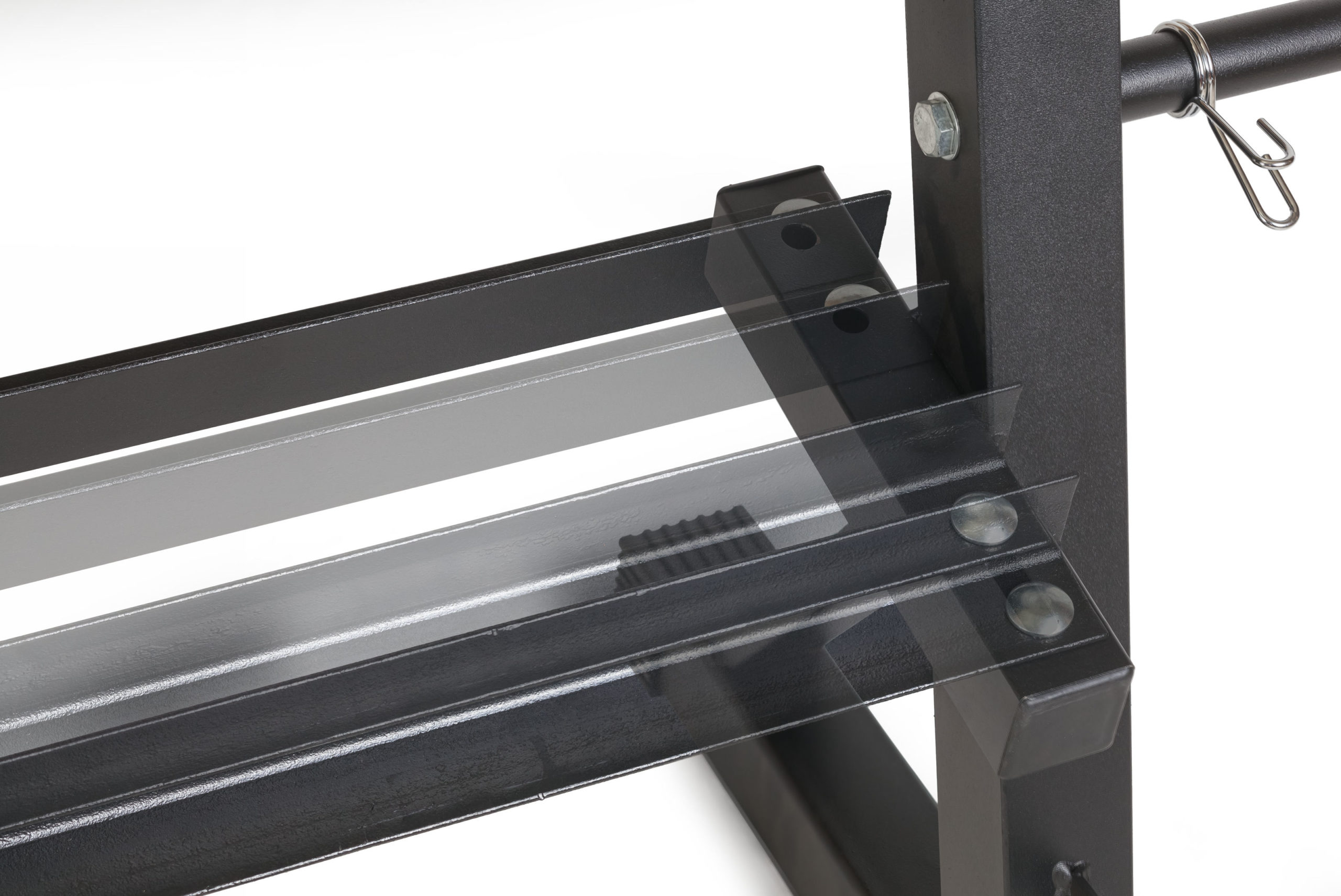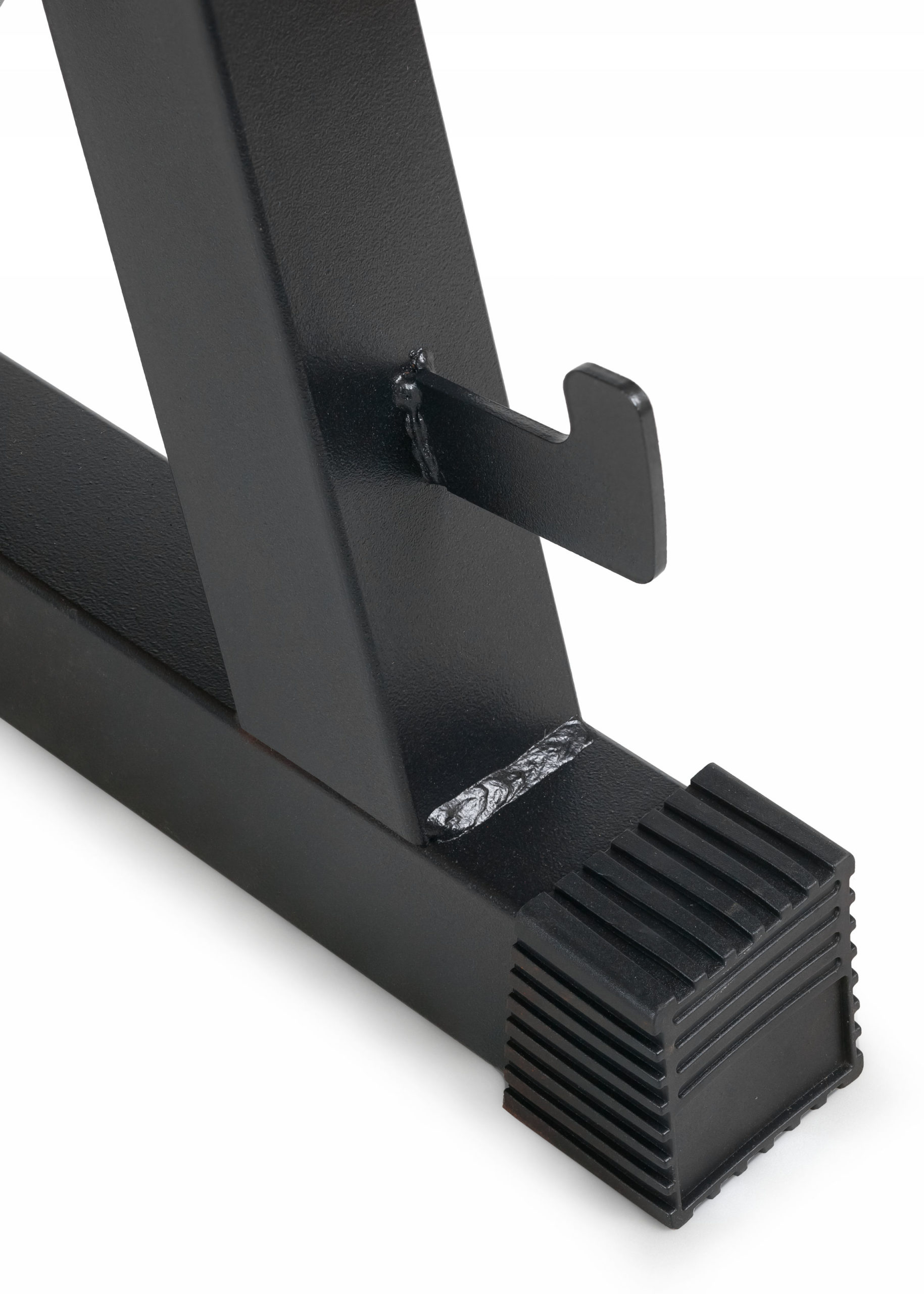 Универсальность – подходит для хранения гантелей и гирь разного веса, обеспечивая быстрый доступ во время тренировки. Прочность и долговечность – изготовлена из высококачественной стали, выдерживает нагрузку до 150 кг. Компактные размеры (76×39×69 см) – занимает минимум места, идеально впишется даже в небольшие пространства. Удобные втулки (диаметр 26 мм, длина 16 см) – обеспечивают надежную фиксацию снарядов и предотвращают их падение. Простота сборки и транспортировки – вес конструкции всего 10 кг, а упаковка (92×46×11,5 см) позволяет легко перевозить стойку.