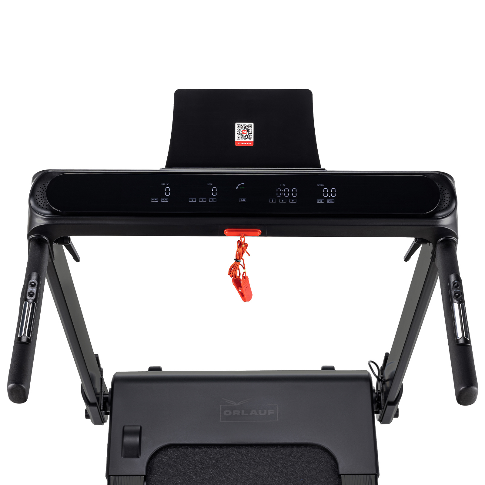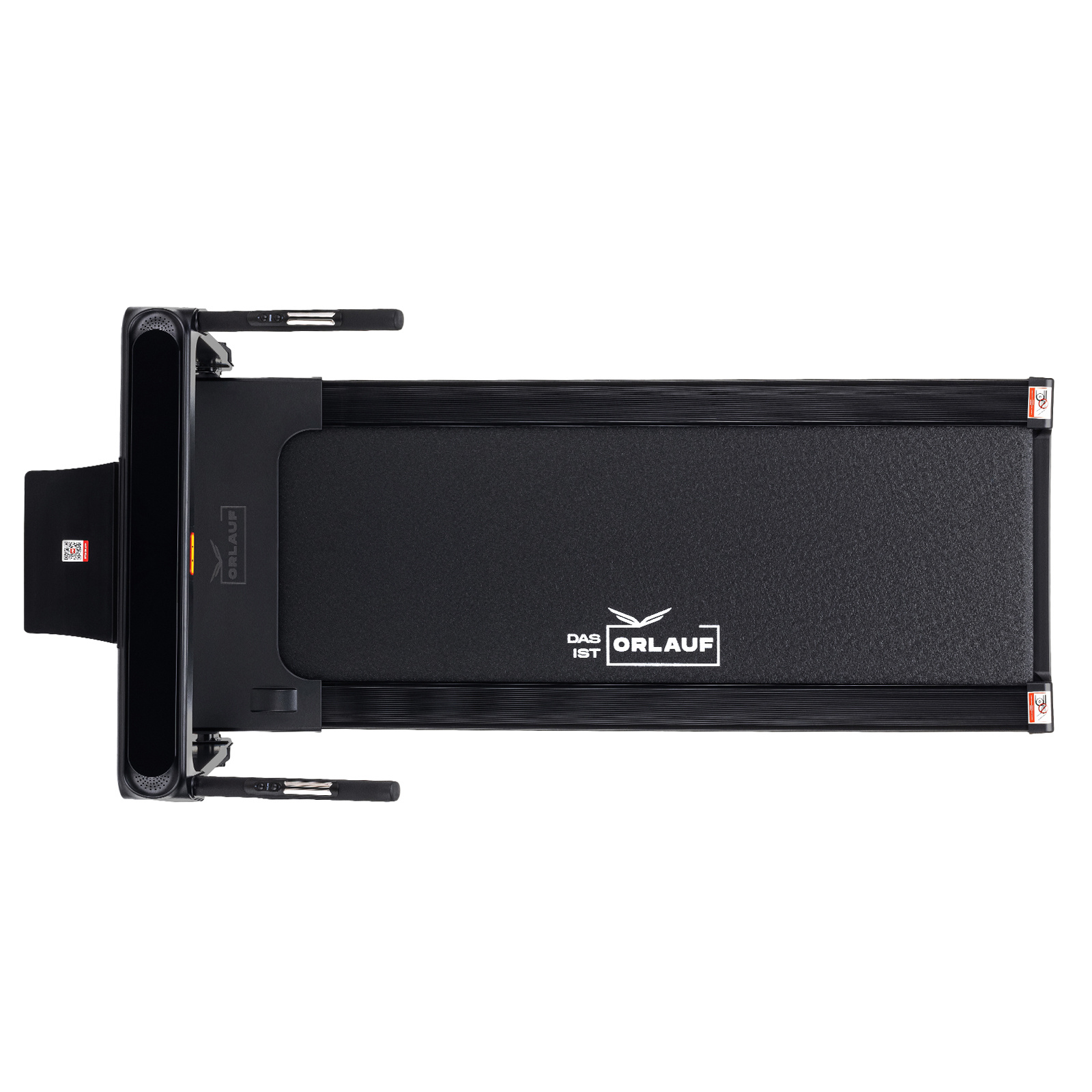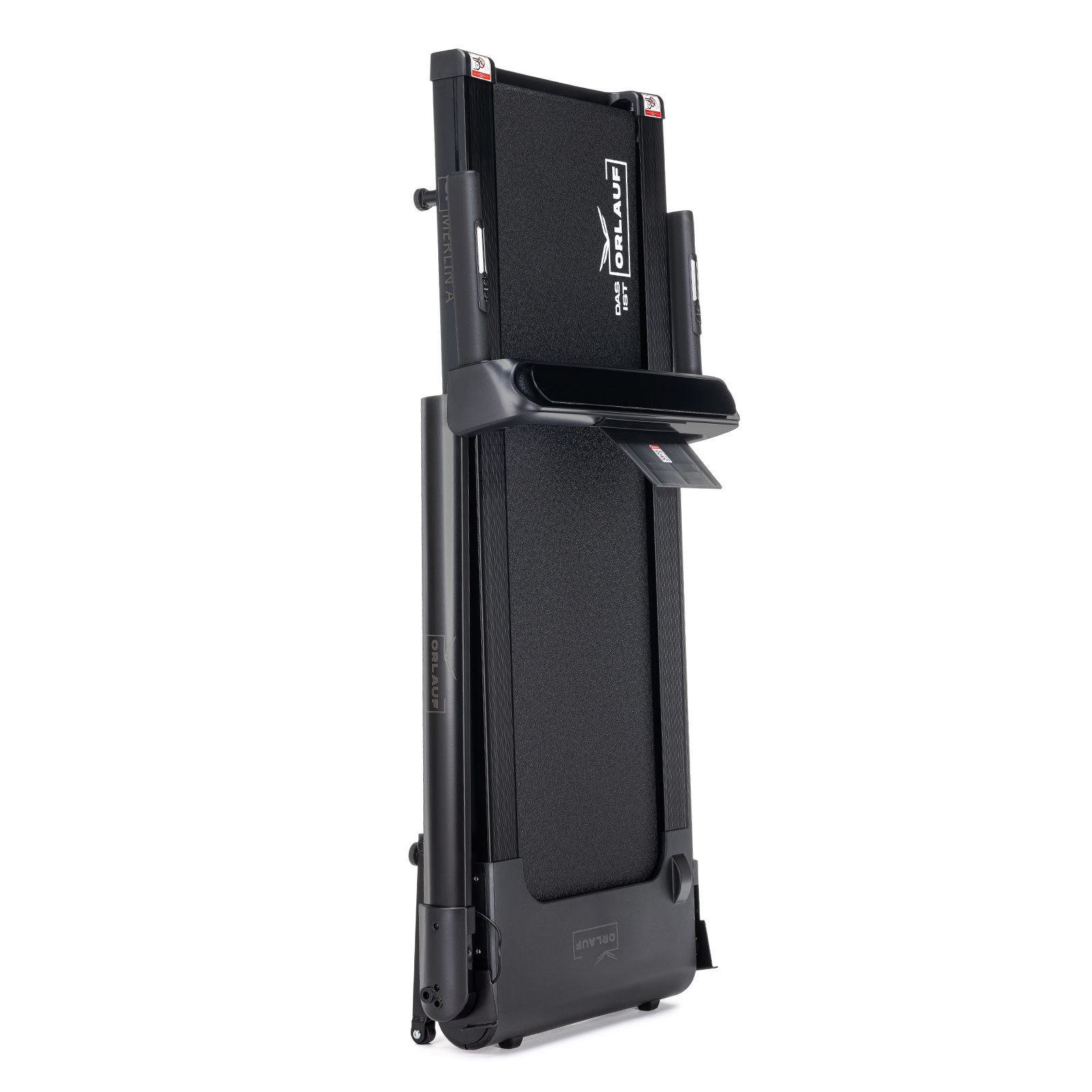 Orlauf Merlin A складывается с толщиной всего 25 см, что позволяет хранить тренажер в вертикальном и горизонтальном положении. Дорожка оснащена транспортировочными роликами для удобного перемещения. Модель выполнена в цвете Starless Night, что позволяет ей гармонично вписаться в различные интерьеры.