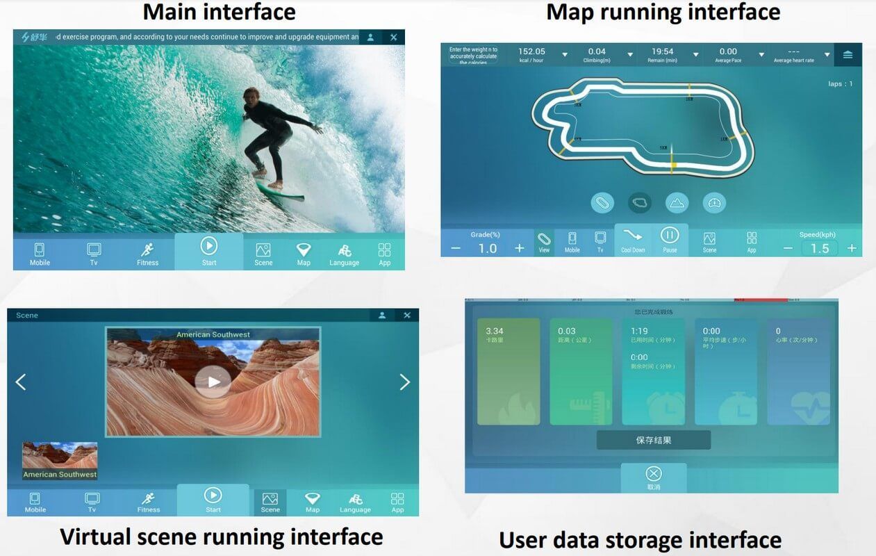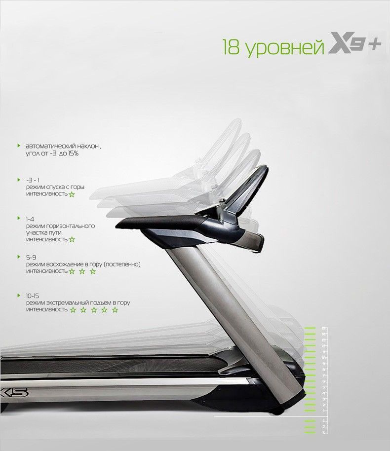 Пользователю дорожки доступны 10 программ тренировки, режим спуска с горы при наклоне от -1 до 3%, высокоинтенсивные тренировки с наклоном до 15%, 15,6 дюймовый тачскрин с ОС Андроид, WI-FI, популярными приложениями. В программном режиме возможно удалять встроенные приложения и устанавливать Google Play приложения c USB накопителя. Скорость дорожки подойдет как для новичка, так и для профессионального атлета - от 0,8 до 20 км/ч.