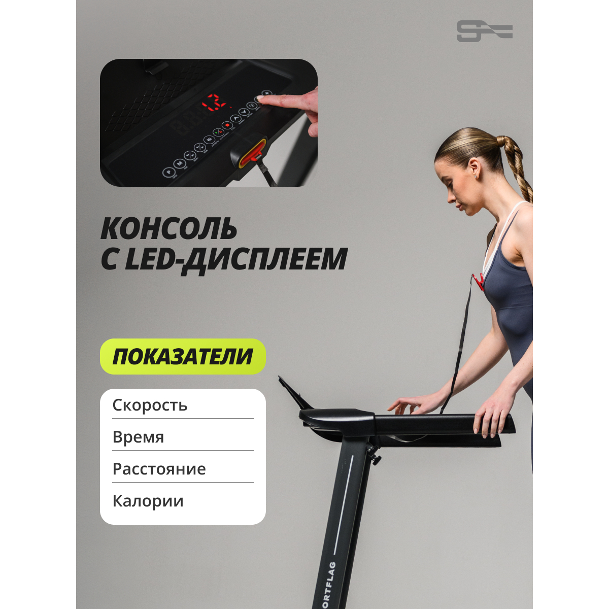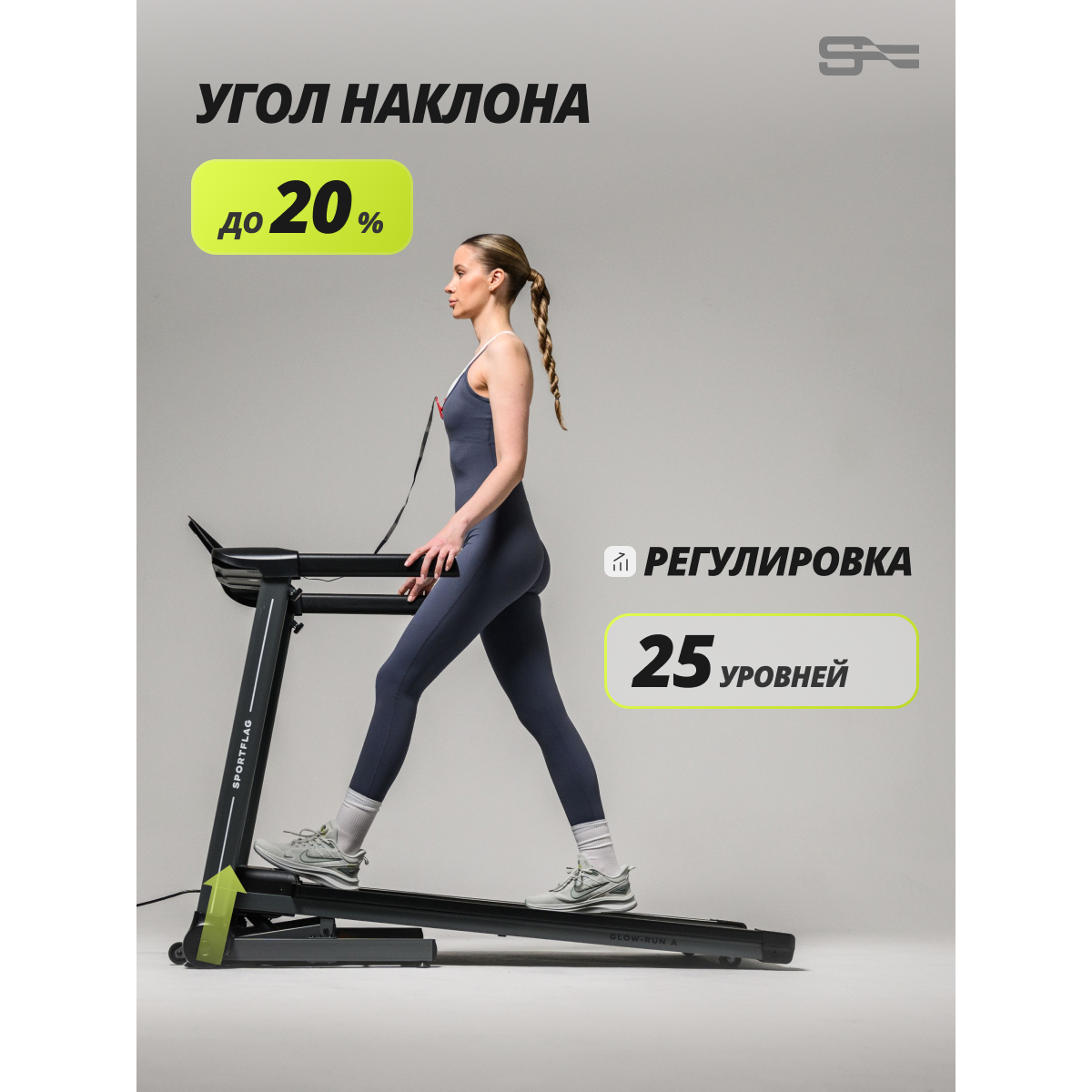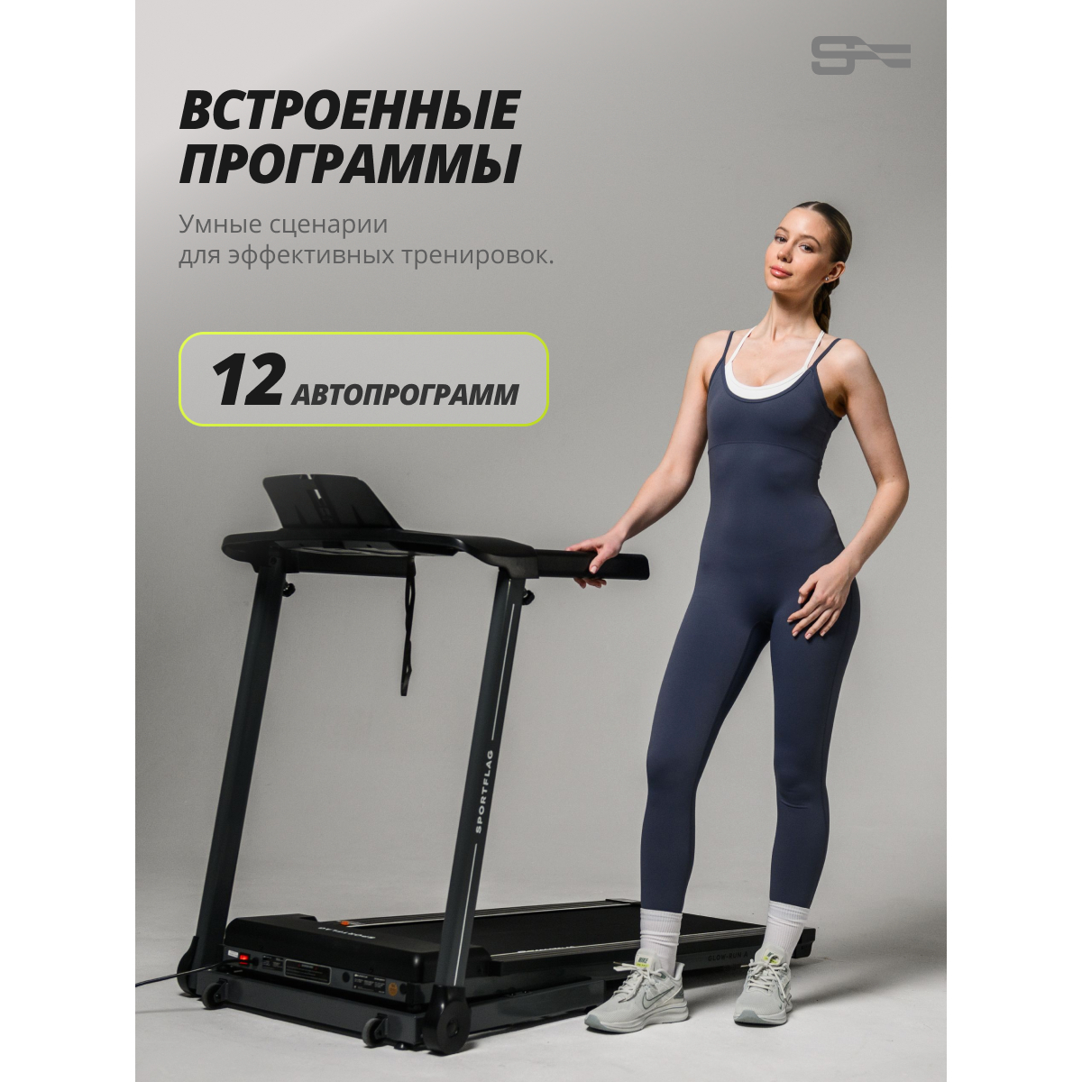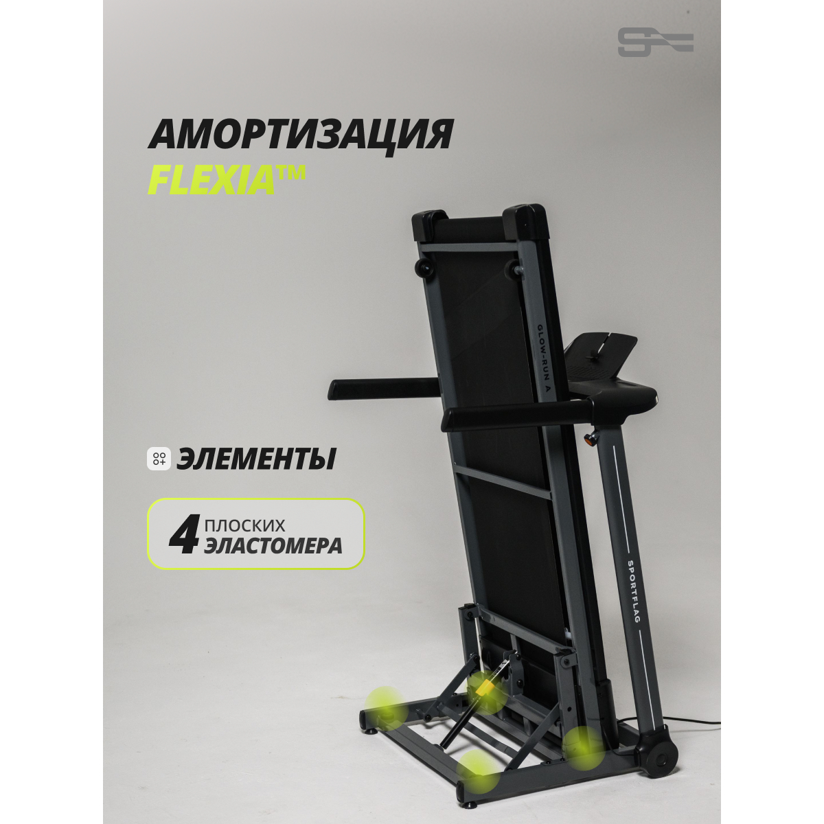 SportFlag Glow-Run A — это беговая дорожка, созданная для интенсивных домашних тренировок без компромиссов в ресурсе и функциональности. Модель оснащена бесщеточным двигателем, работающим тихо и не требующим обслуживания, и системой амортизации на основе четырех плоских эластомеров увеличенной площади.